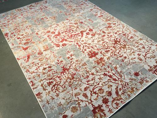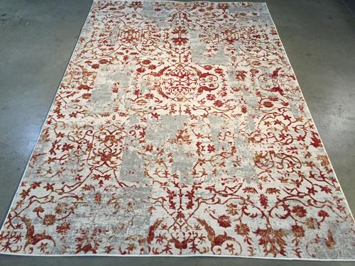 6 Feet 7 Inches X 9 Feet 6 Inches Designer, Brand Name Rug, Stunning blend of Traditional motifs with Modern up to date Colors and Patterns in Ivory, Grey, Copper Colors, made of Bamboo Silk and Polypropylene Pile Power Loomed in Turkey.