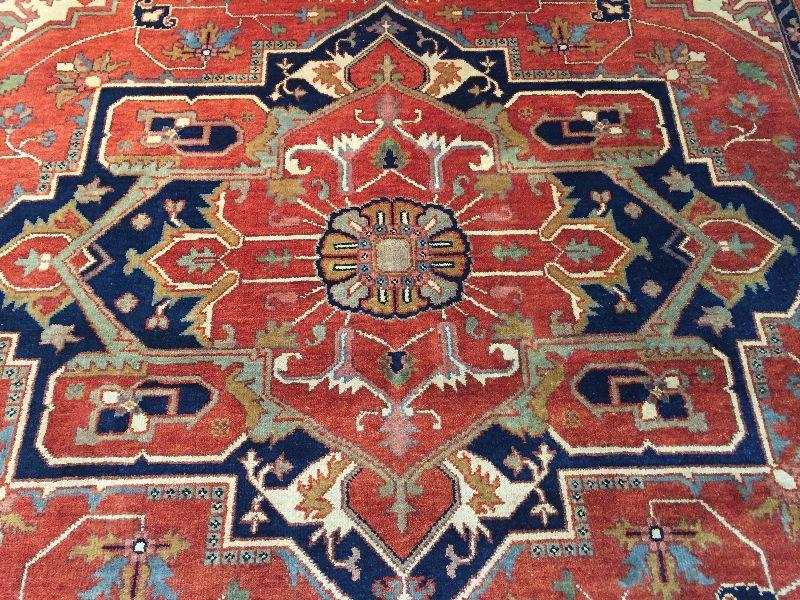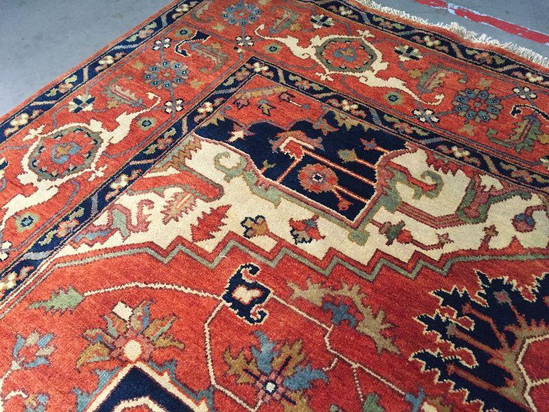 8'.1"X10'.0 Traditional-medallion "Serapi" design rug made of 100% natural wool and veggie dye rust ,red, Ivory and multi colors hand-knotted in India