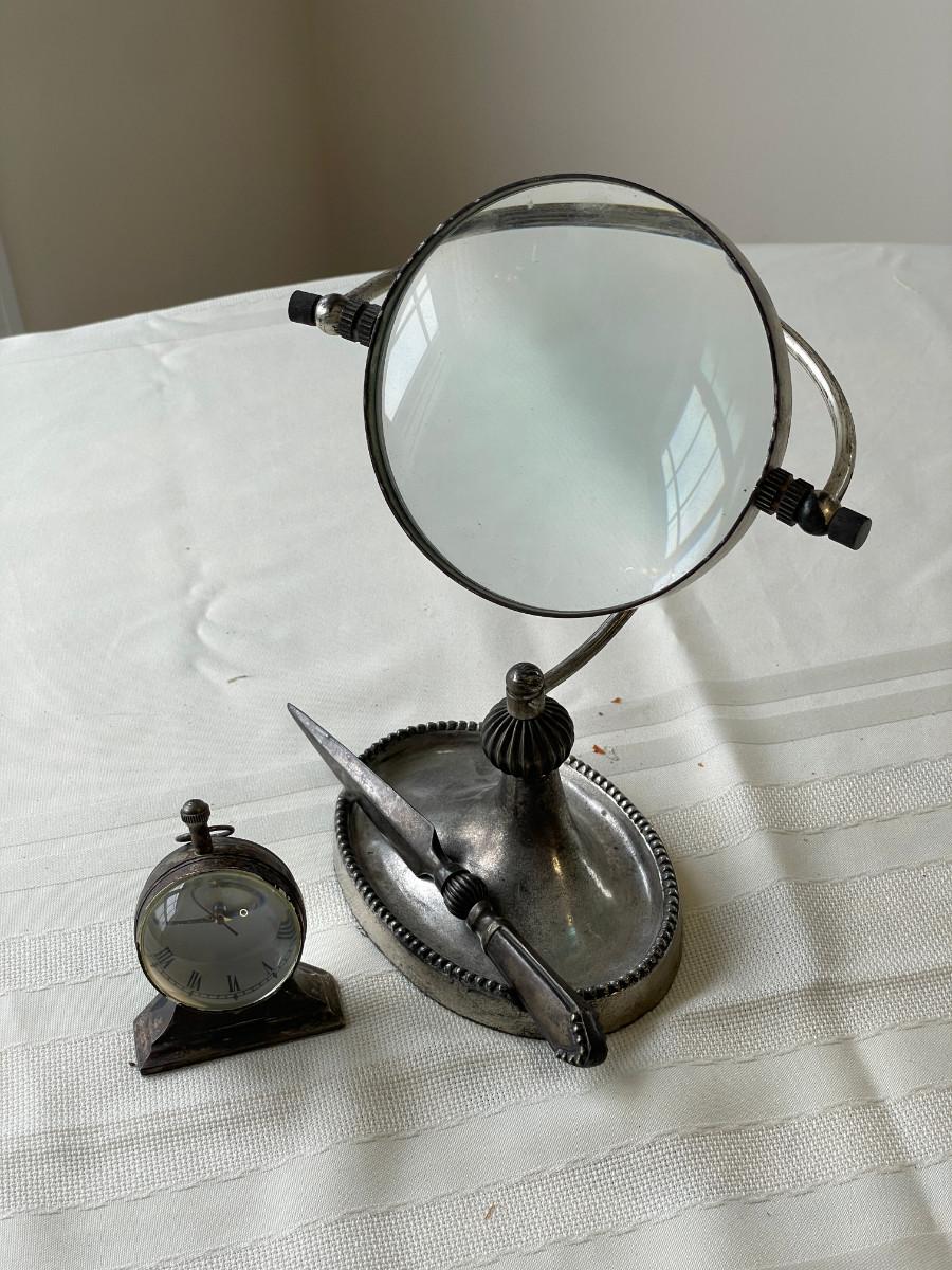 Magnifying Glass with Letter Opener and Orb Magnifying Clock