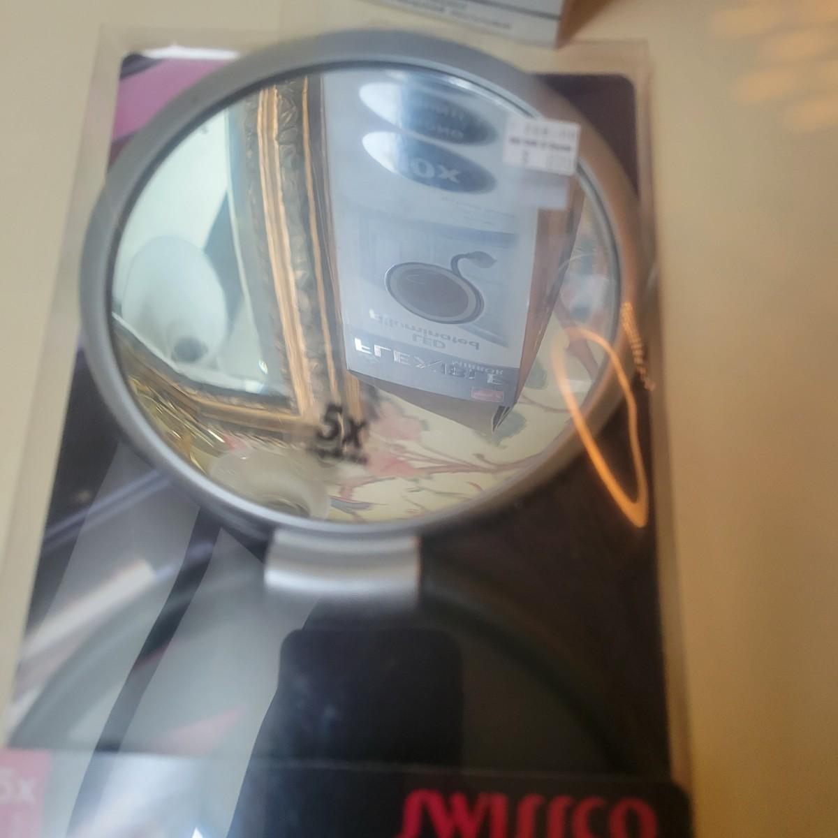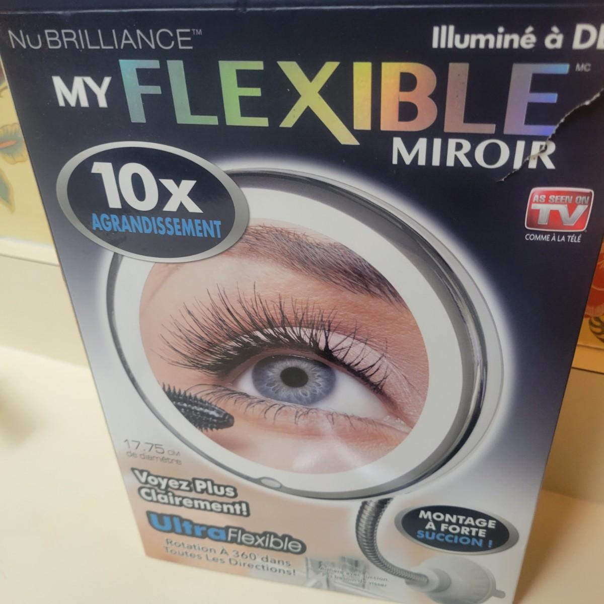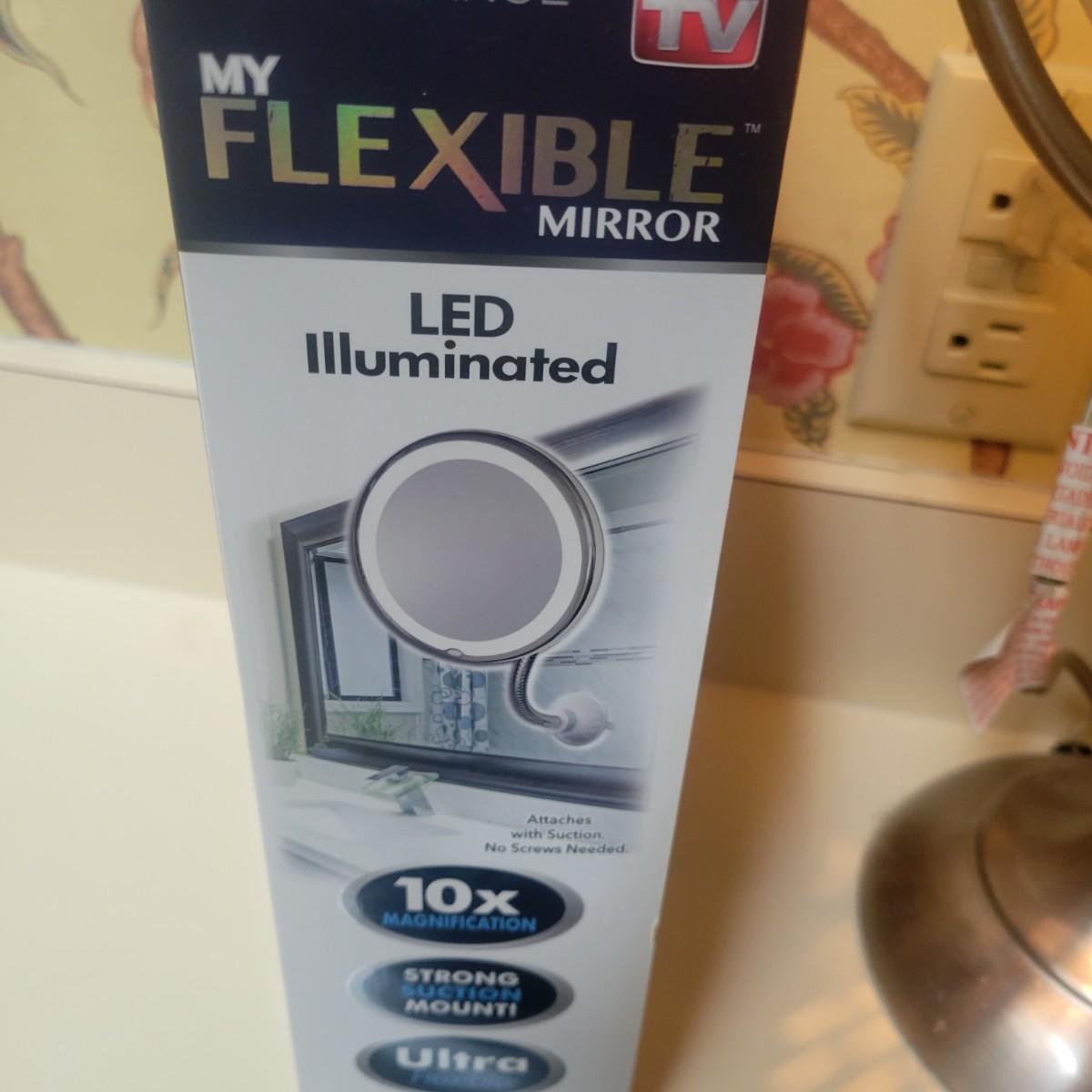 3 magnifying mirrors. One is a tabletop mirror with 3 light settings. One side magnifies and the other side is a standard mirror. Measures approximately 10" x 6.5" x 17.5" Newand in original packaging flexible mirror with a 10x magnification with a suction mount. Also new 5x hanging/standing mirror
