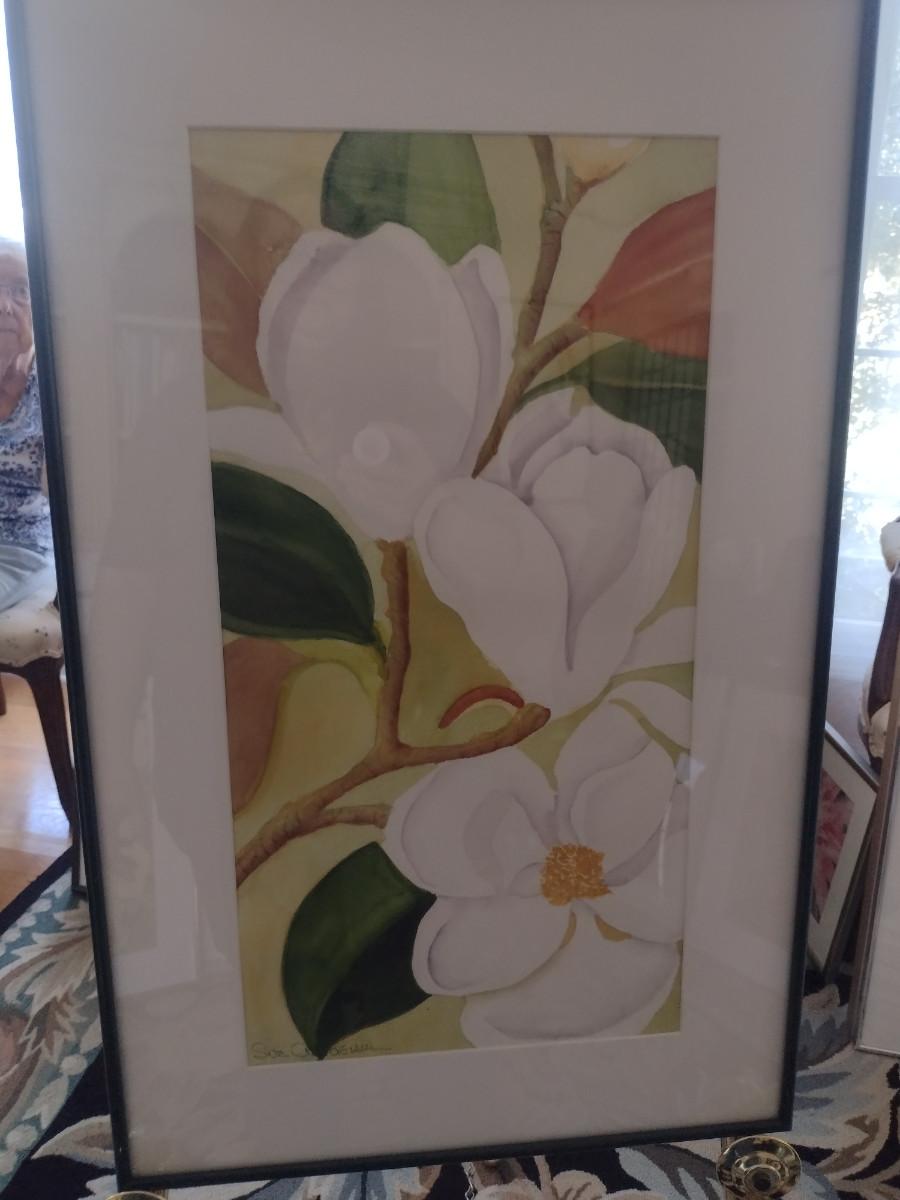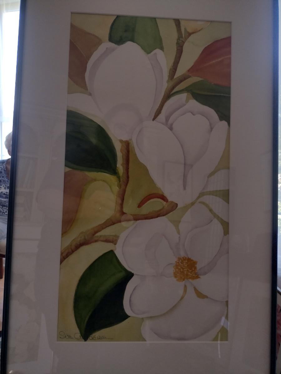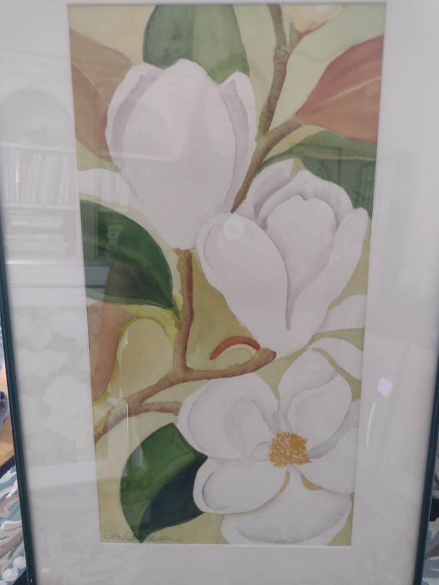 'Magnolia Panel I' Original Framed Watercolor by Nationally Recognized Artist Susan Anderson (#20). Item is framed under plexiglass.