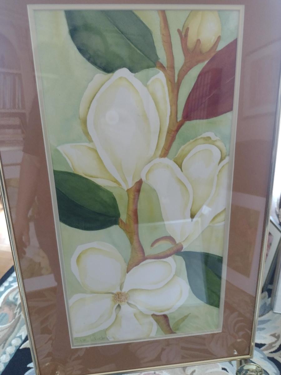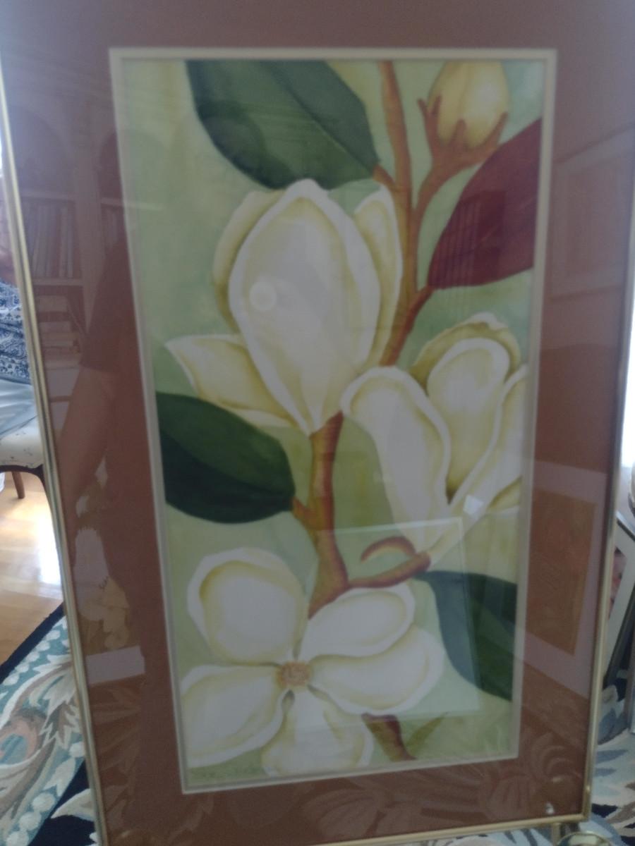 'Magnolia Panel II' Original Framed Watercolor by Nationally Recognized Artist Susan Anderson (#14). Item is framed under plexiglass.