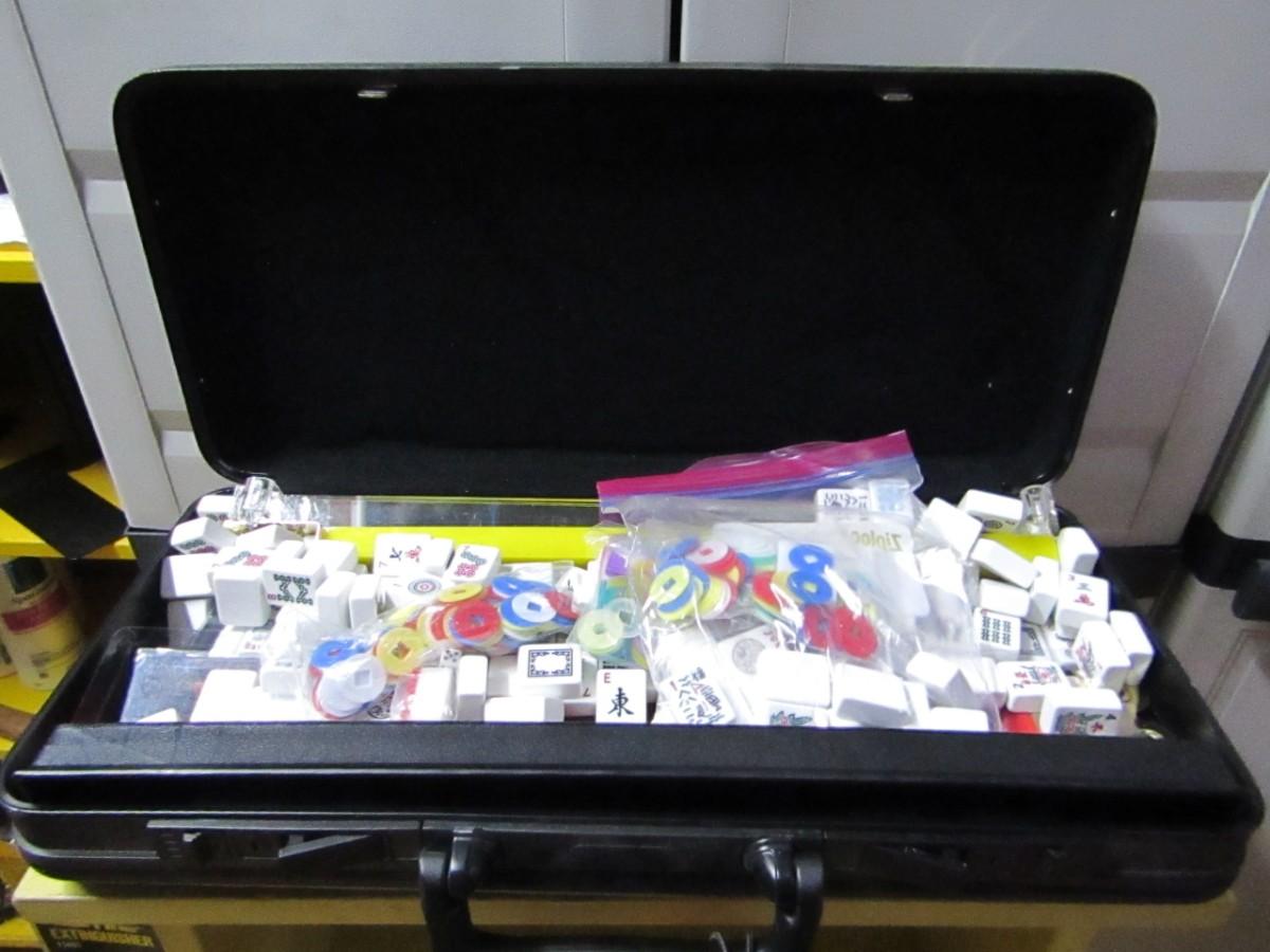 Mahjong Tile and Rack Set in Hard Case unknown if all parts and peices are present