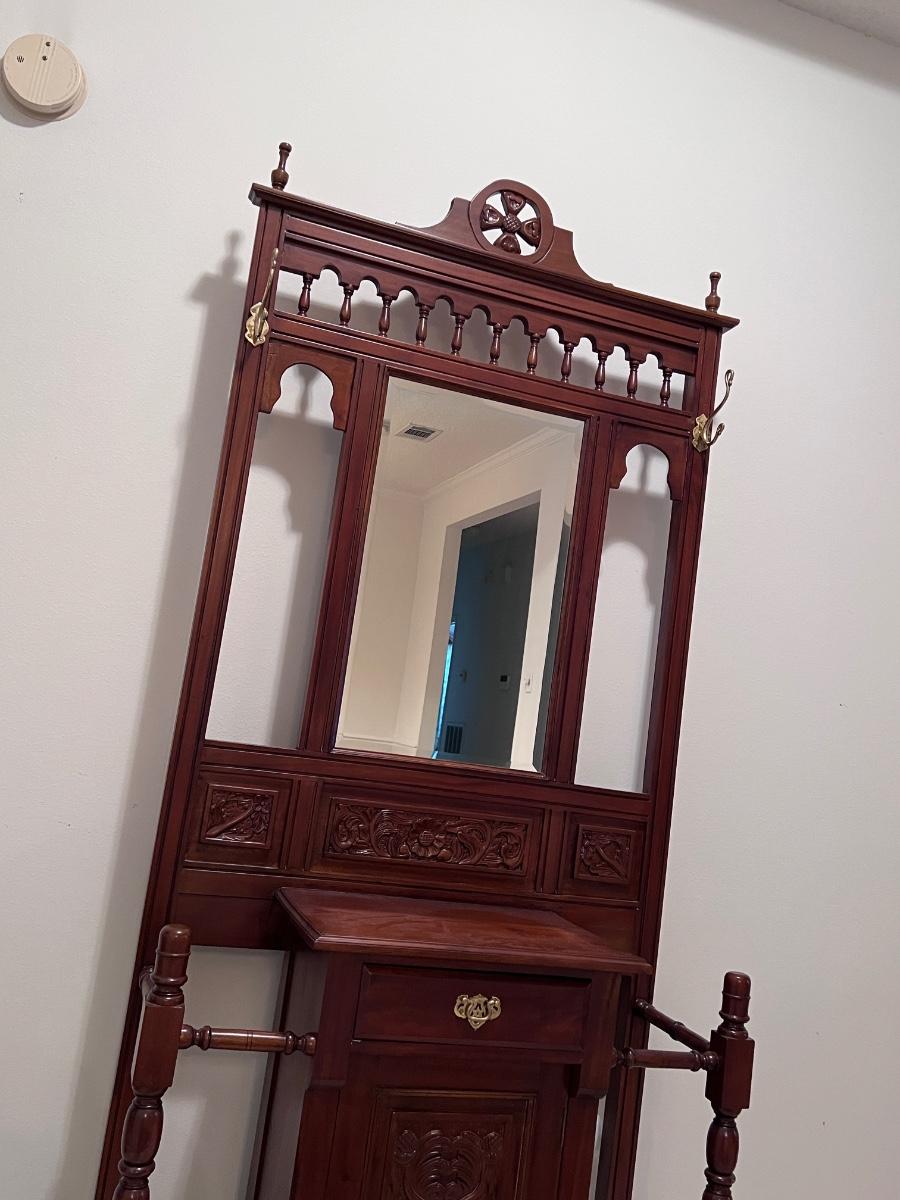 Solid Mahogany Beveled Mirrored Umbrella Stand