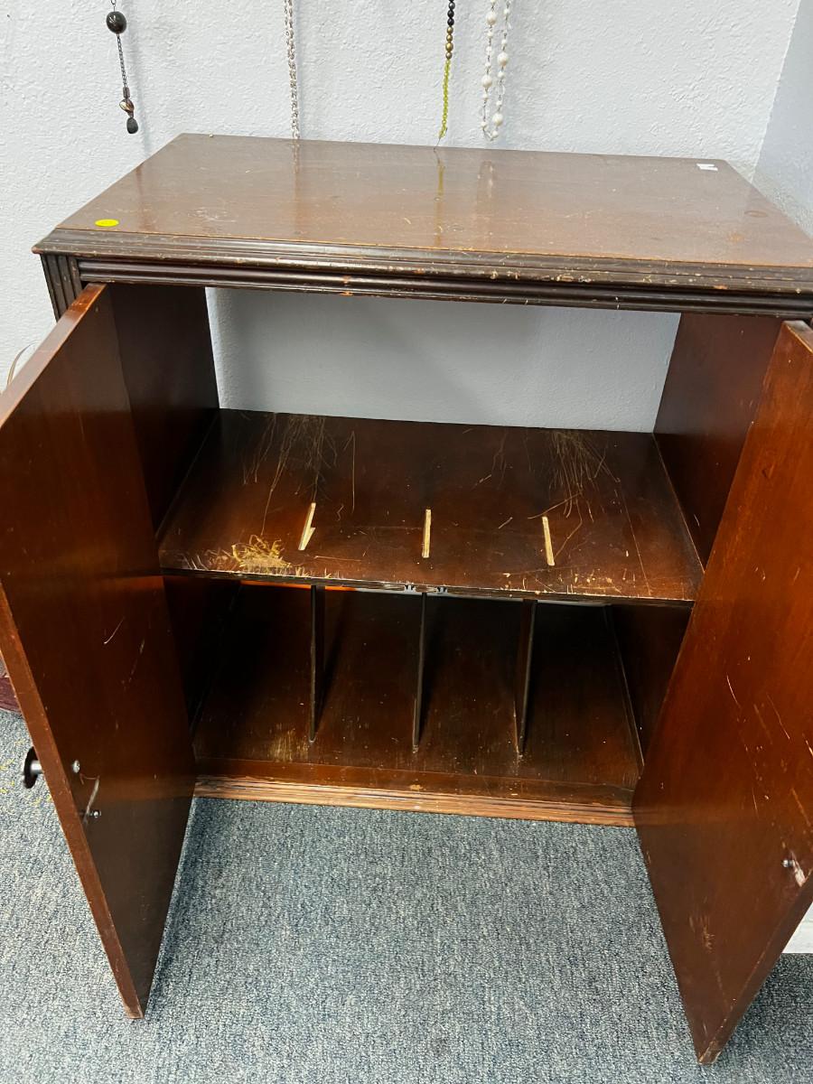 Shows wear and has no back, Probably had records in it at one time. 28 x 17 x 30" Tall