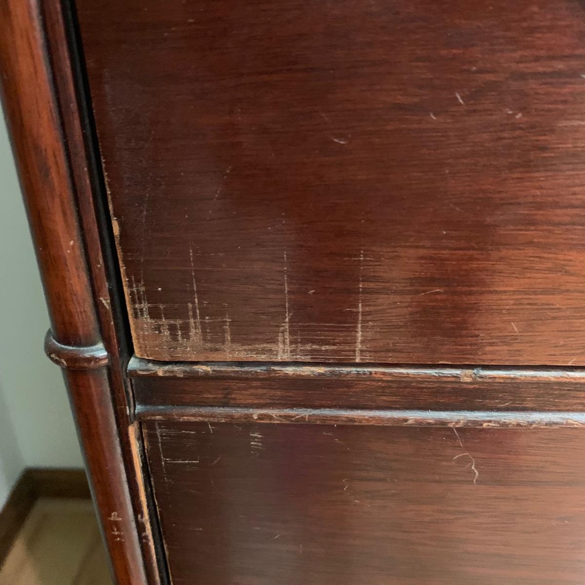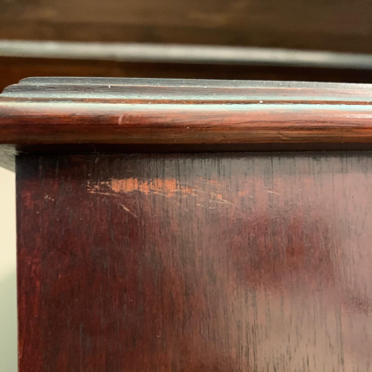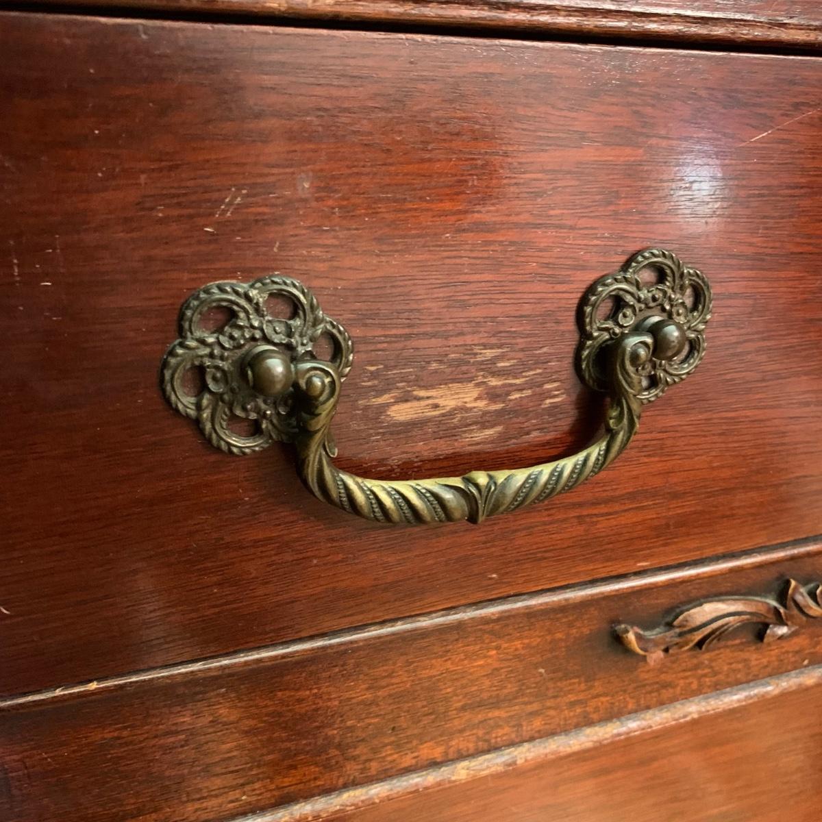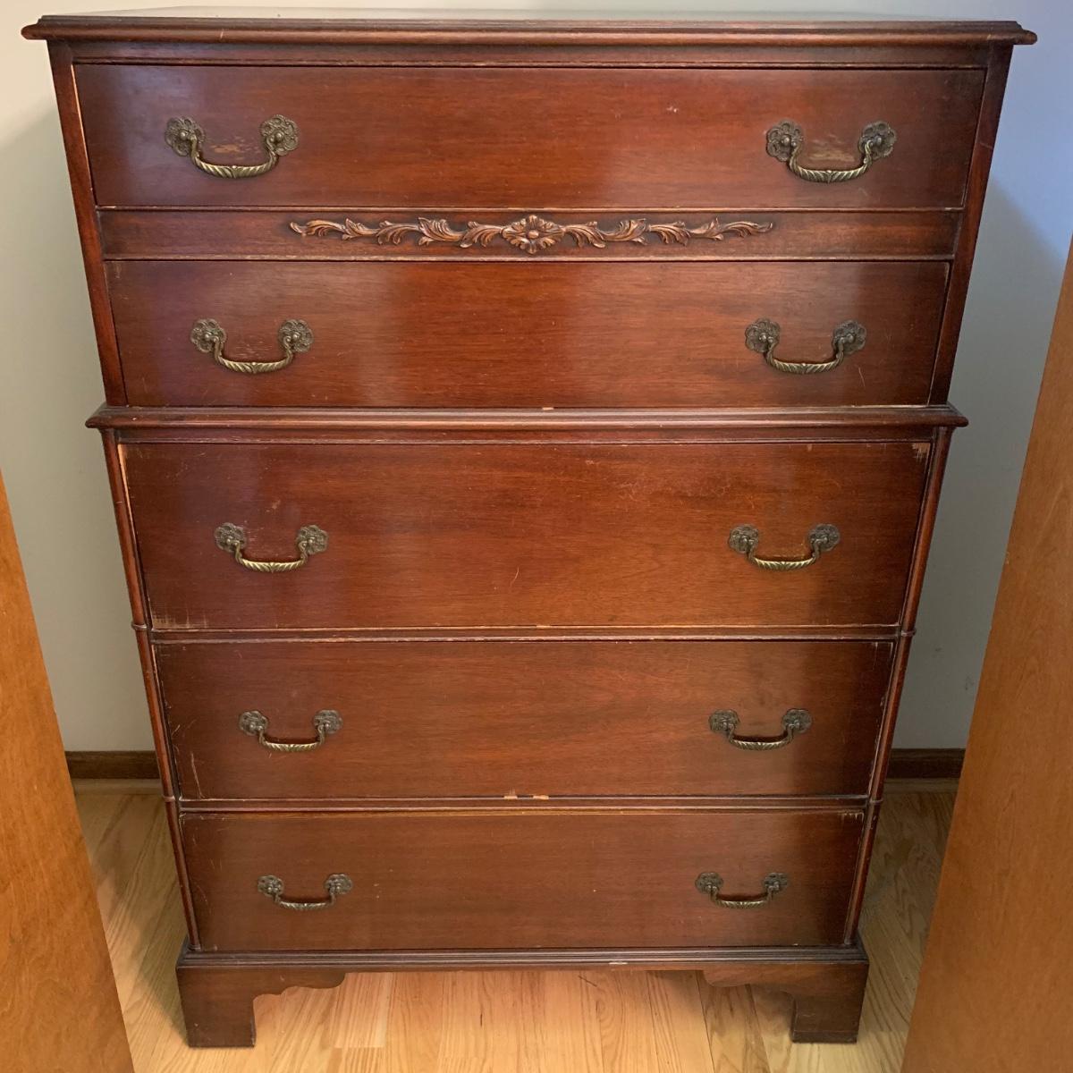 Antique chest on chest, made of what appears to be mahogany. This unique piece is crafted using dovetail joinery and features lovely brass-like hardware. Please note minor blemishes and see photos for more details. Chest on chest measures approximately, 36” x 21” x 52”H. Shipping available. Local pickup only. Winning bidder must bring assistance to help move and load this item due to its weight and/or size.