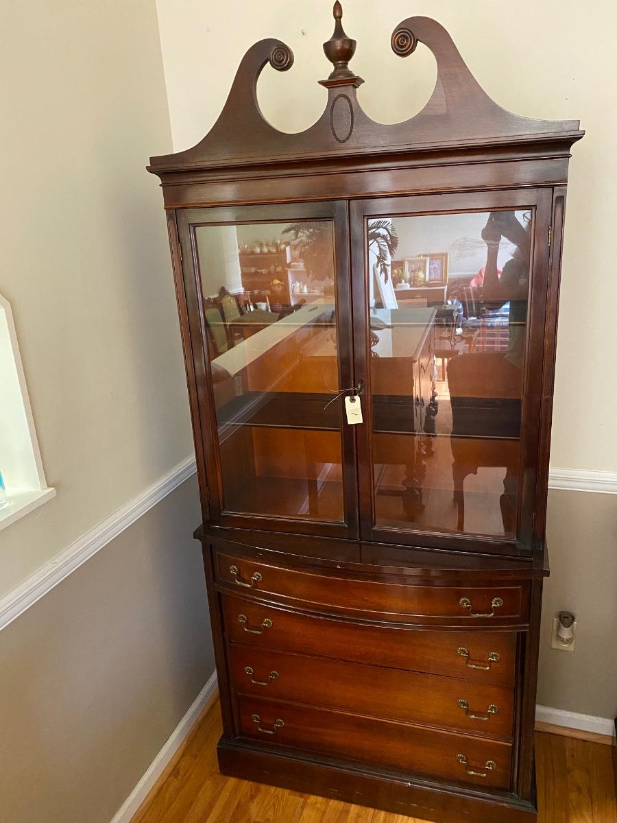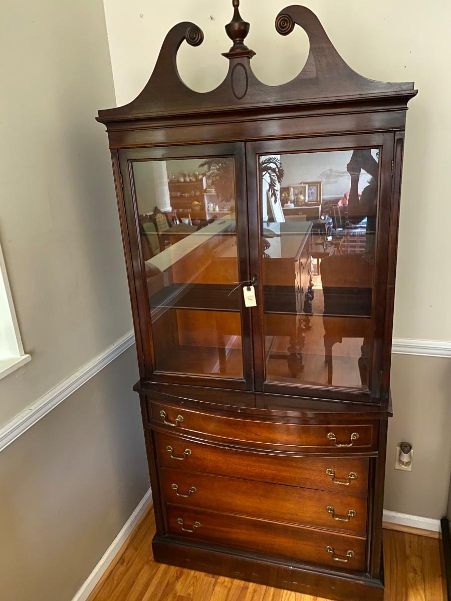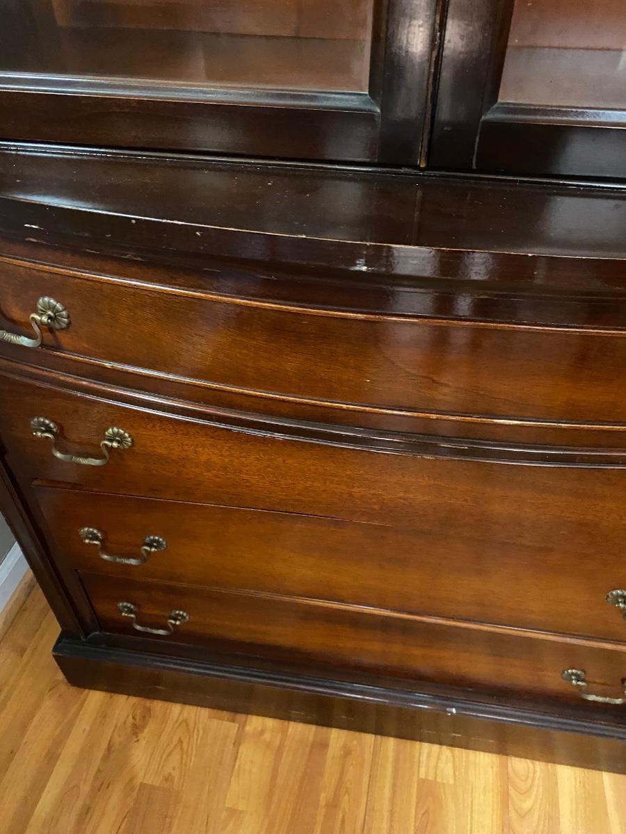 Mahogany China Cabinet, 4 Drawers, 2 Glass Doors, Wooden Shelves, 79x36x18
