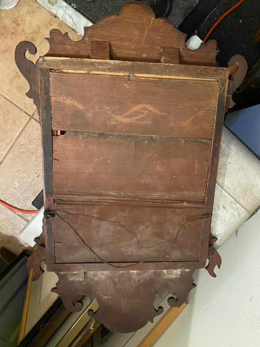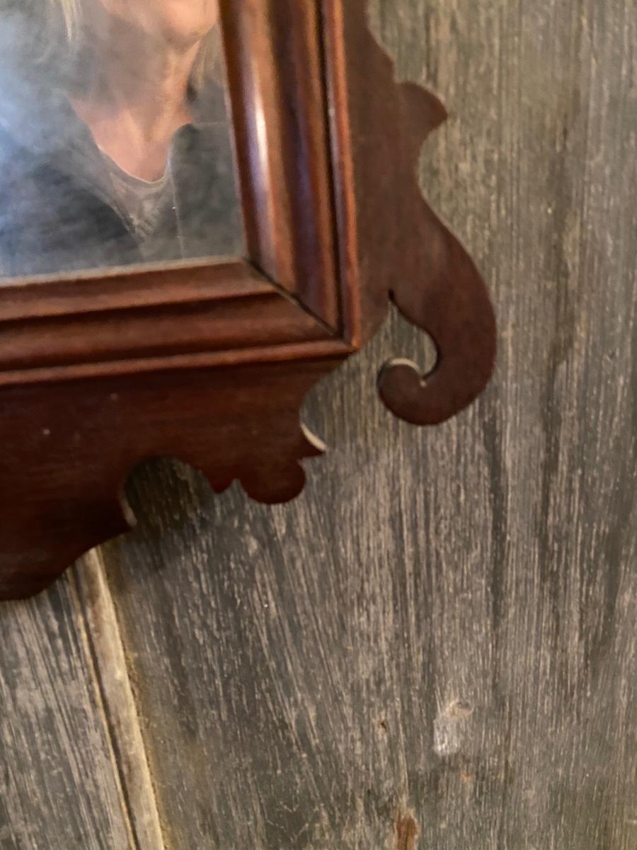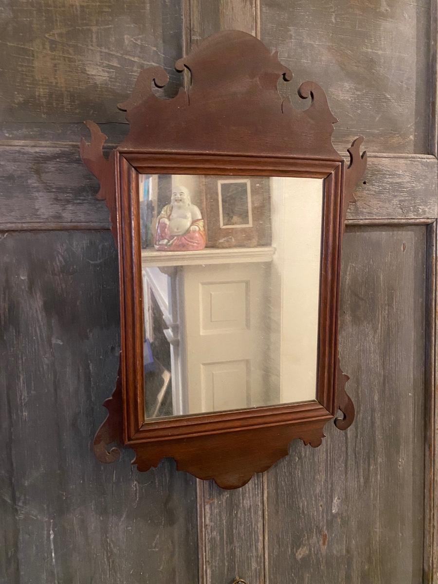 Antique Mahogany Chippendale Style Looking Glass or is it the real thing? Scrolled wood detail is in tact. Approx measurement 19.5" x 12