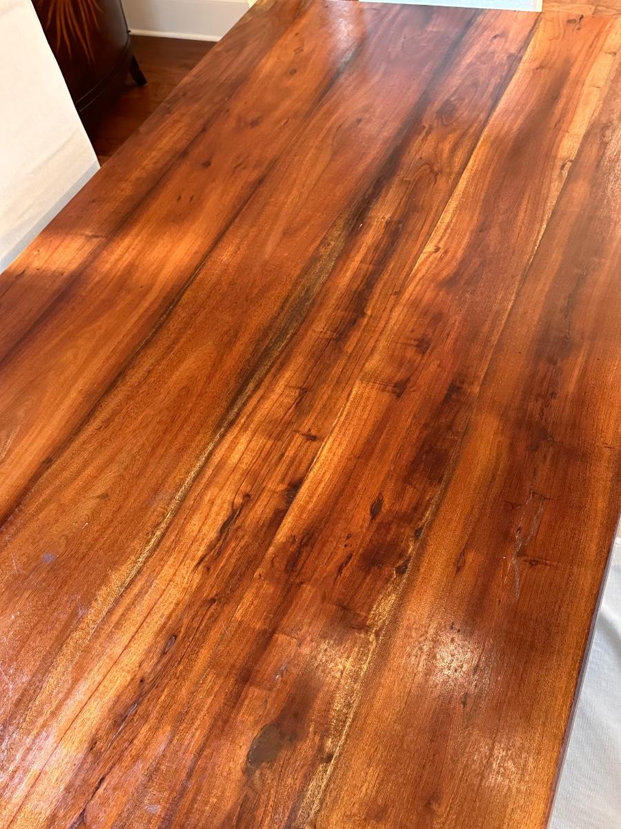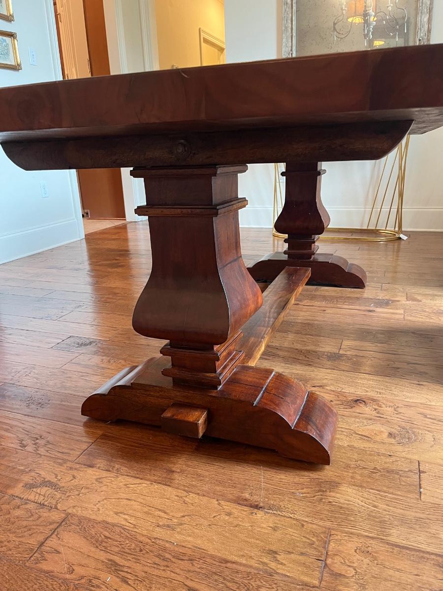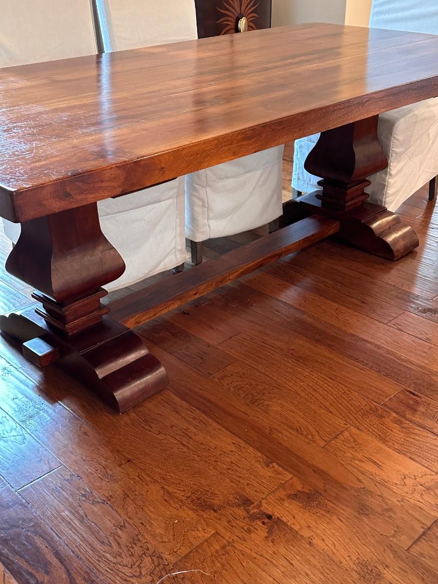 Mahogany Dining Room Tressel Table. ~ Solid Wood ~ Extremely Heavy ~ Six (6) Slip Covered Chairs ~ Excellent