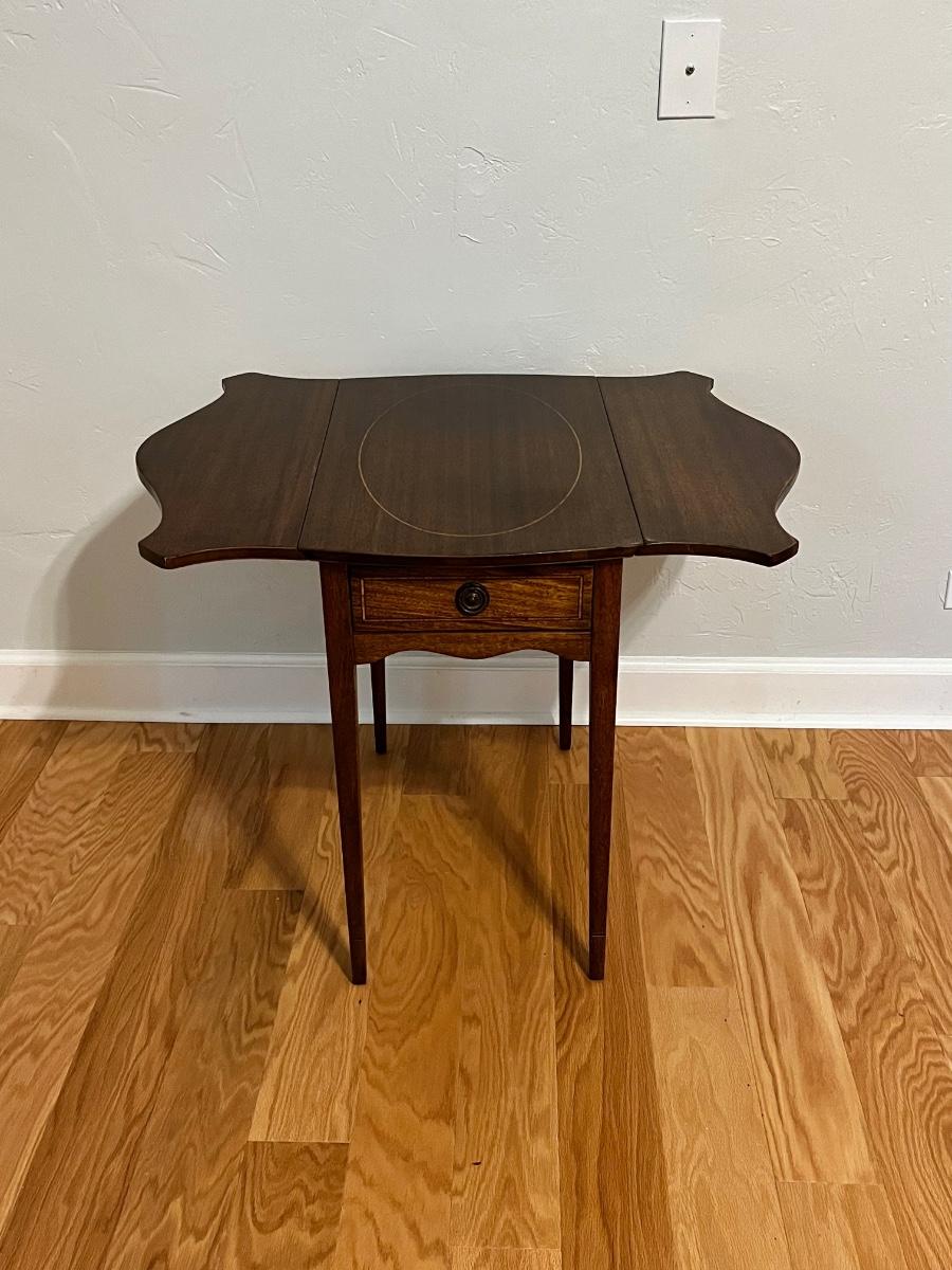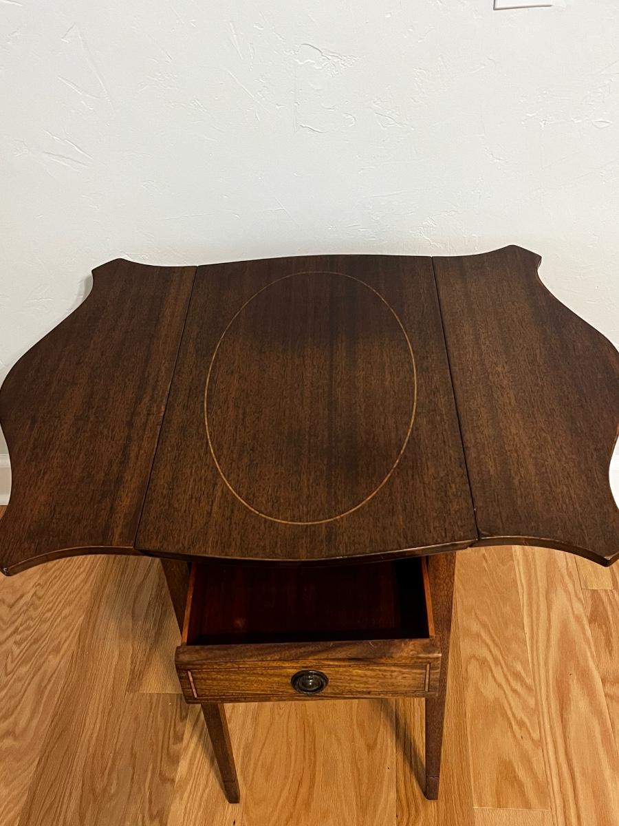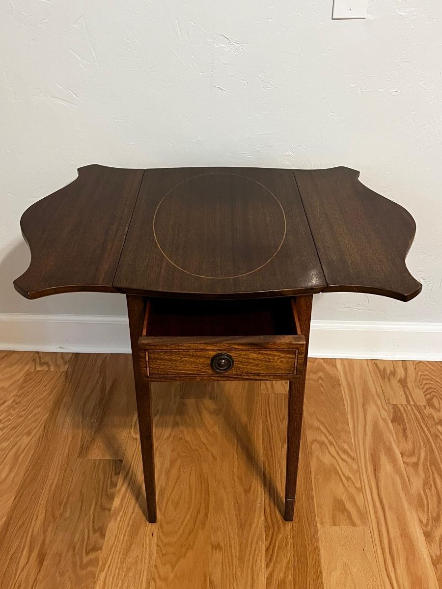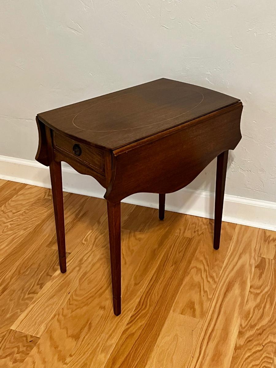 Mahogany ~ Drop Leaf Inlaid Side Table With Scalloped Ends