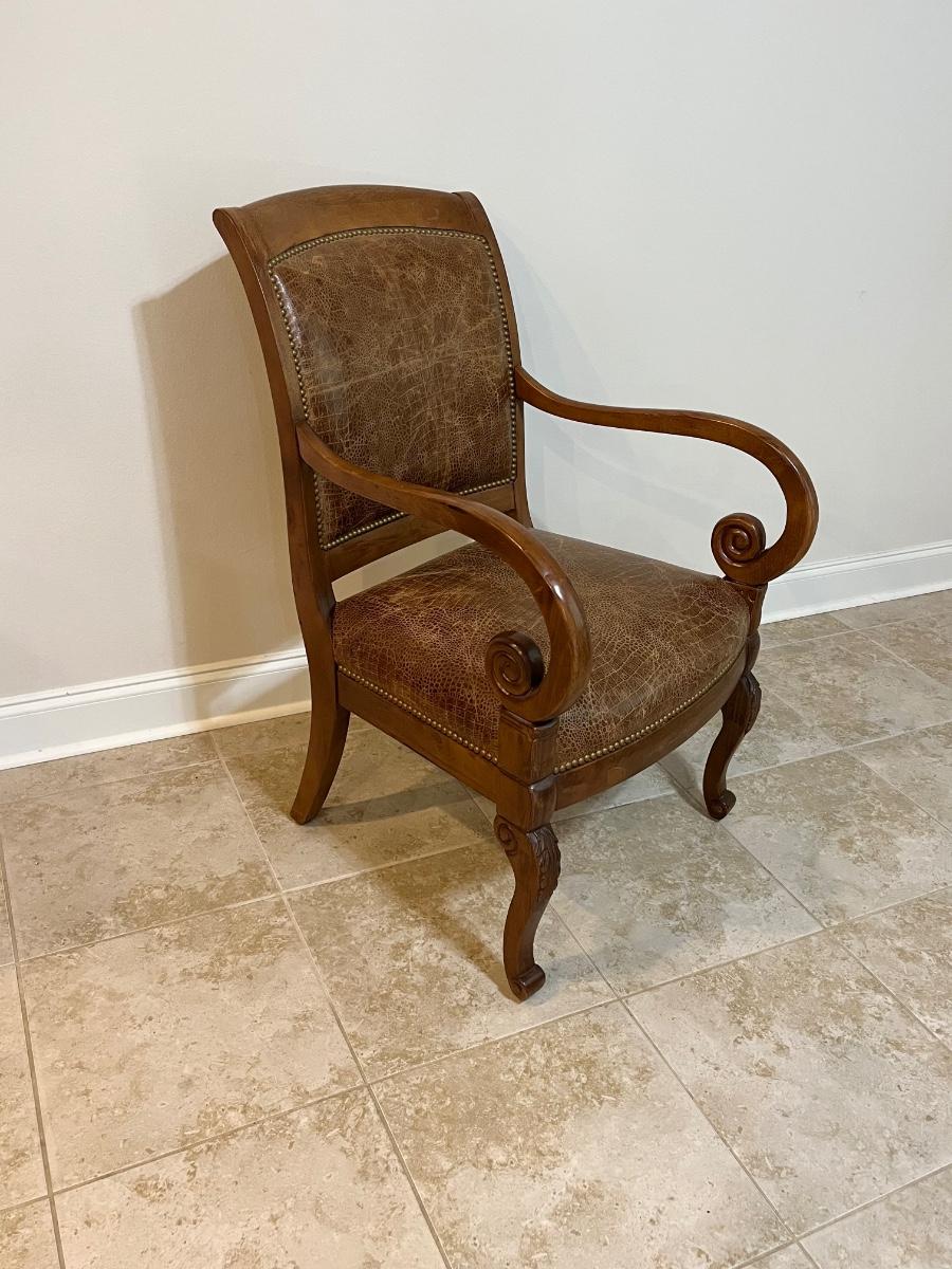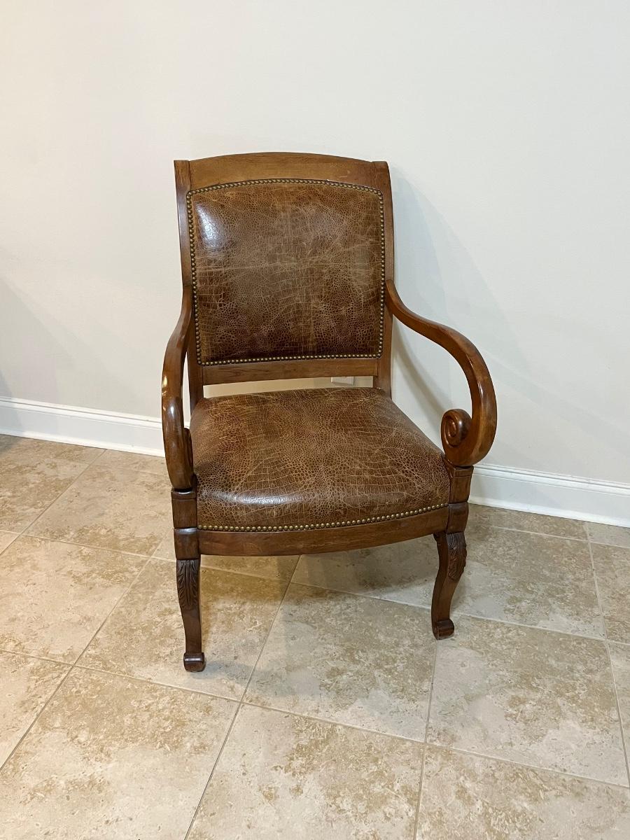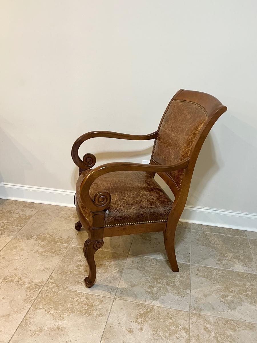 Empire Armchair ~ Leather Snakeskin Design & Nailhead Trim