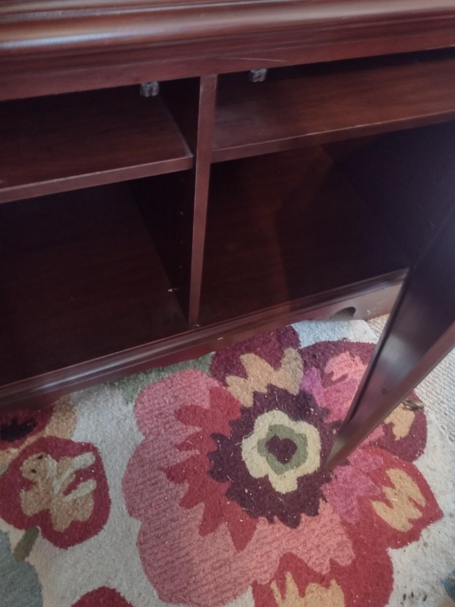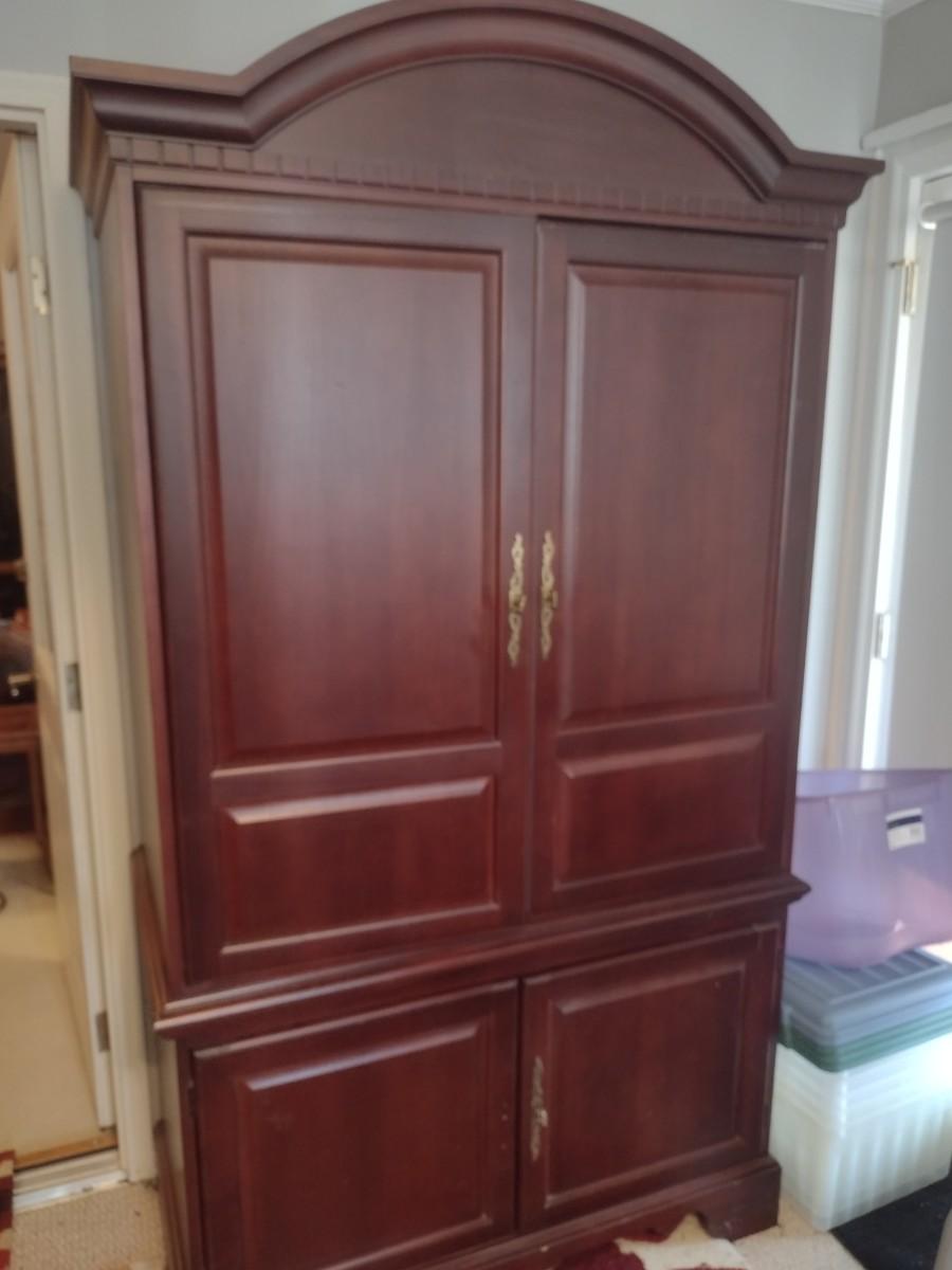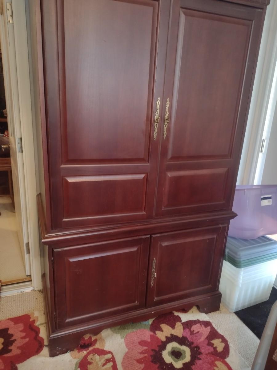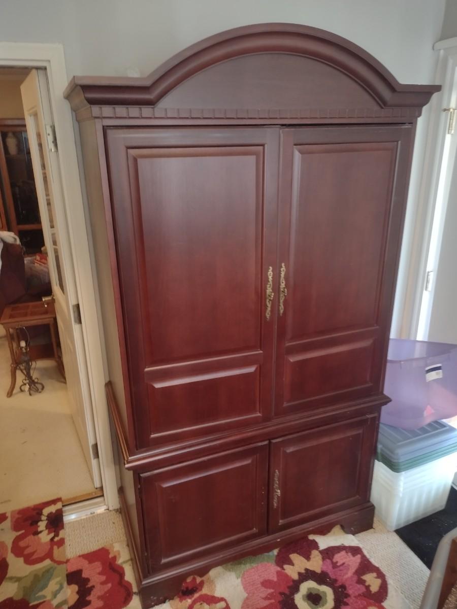 Mahogany Finish Armoire Media Cabinet. See pictures for condition issues.