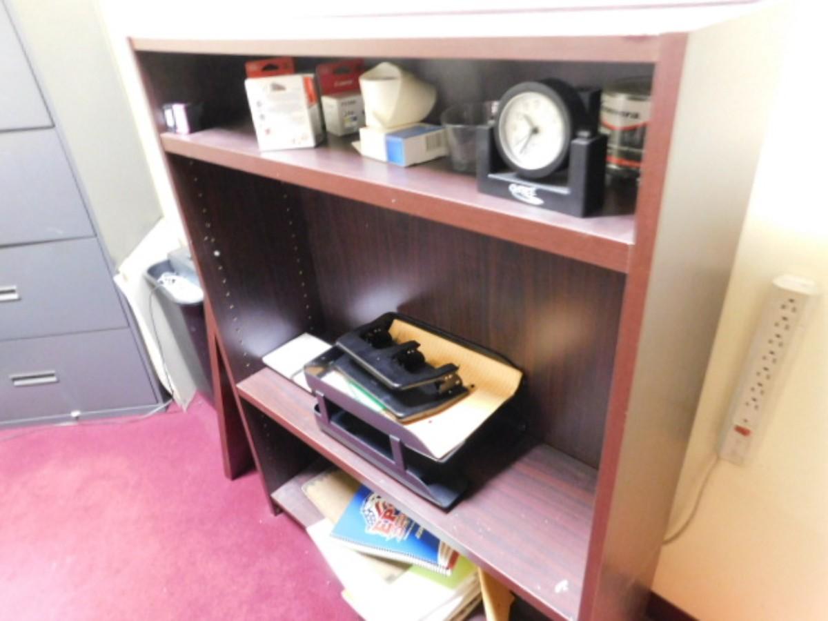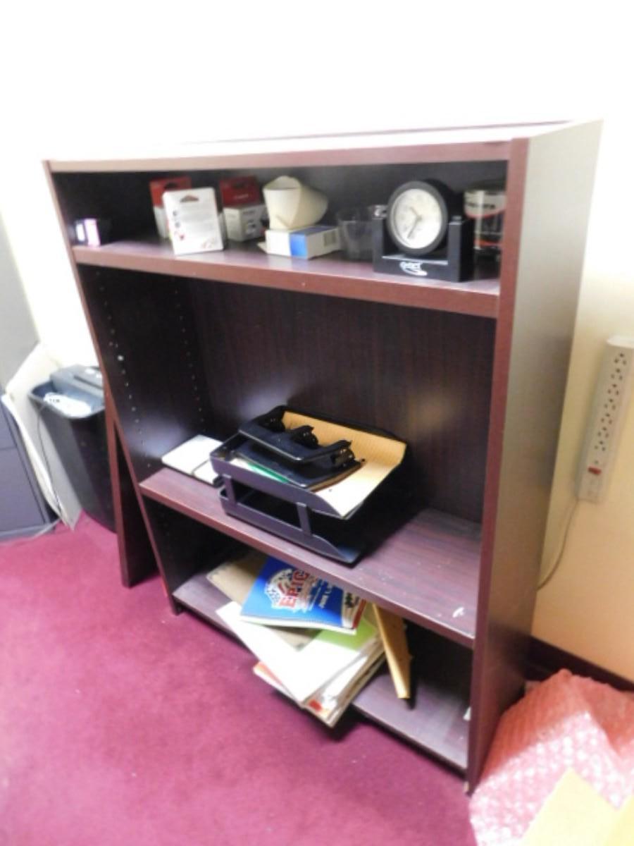 Mahogany Finish Bookcase (No Contents) [MO]. Expect some wear or scratches to finish. Shipping option available via freight or local mover at Buyer's expense. Buyer must have all shipping scheduled within the stated dates and times of pickup. Recommended local mover is Beaty Bros. Moving 828-201-2982