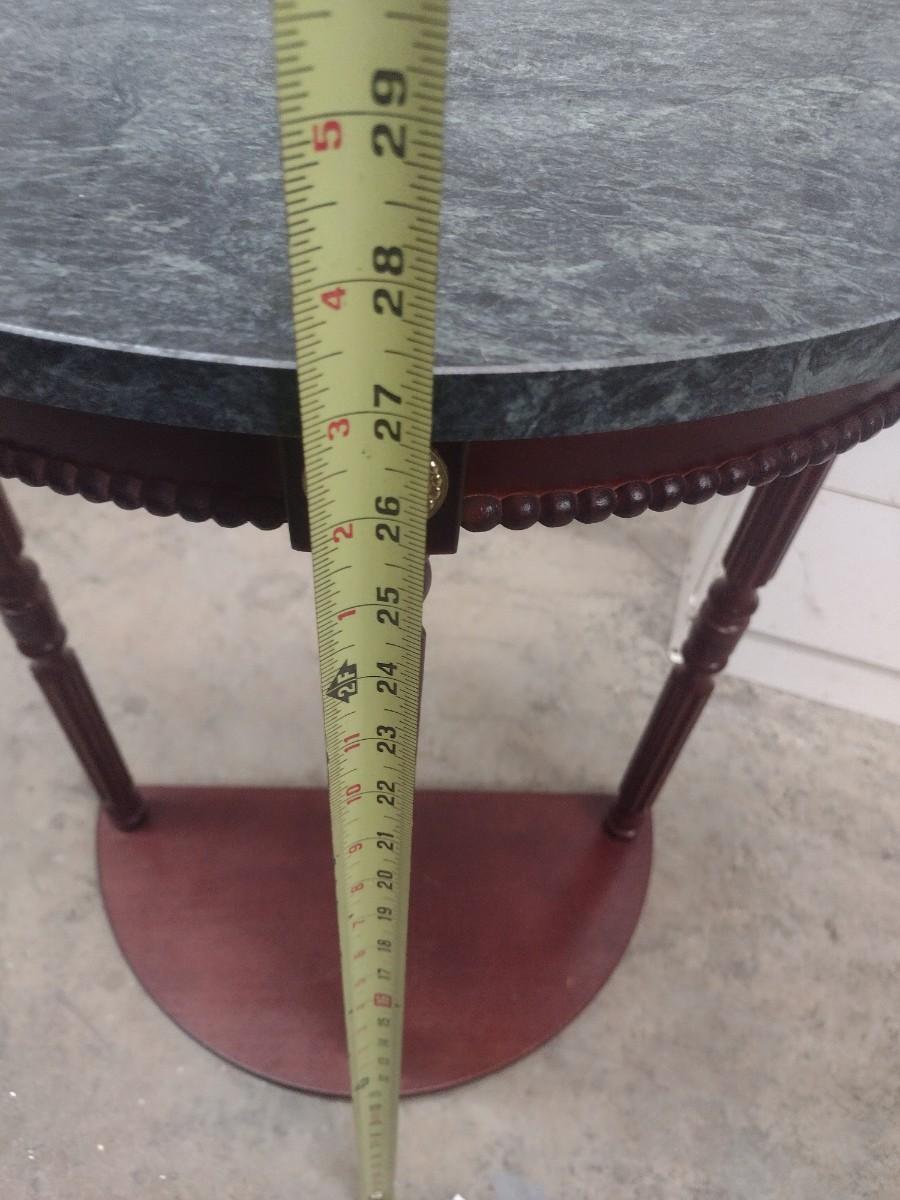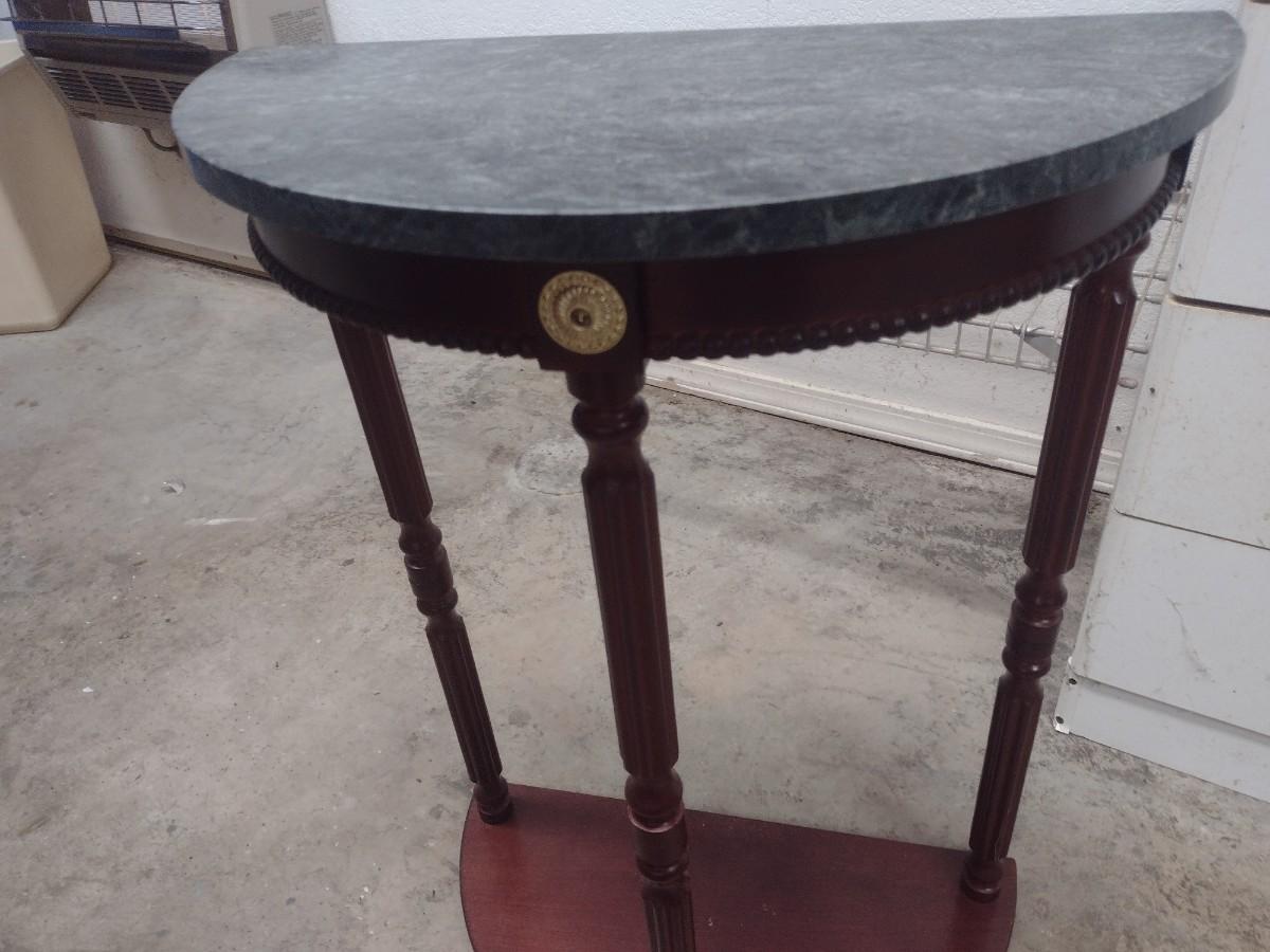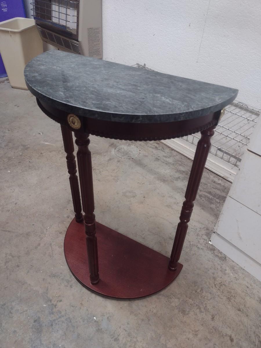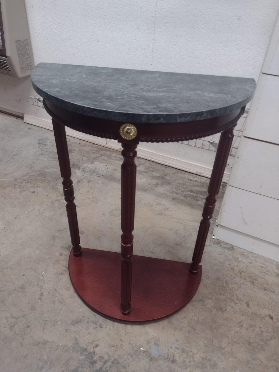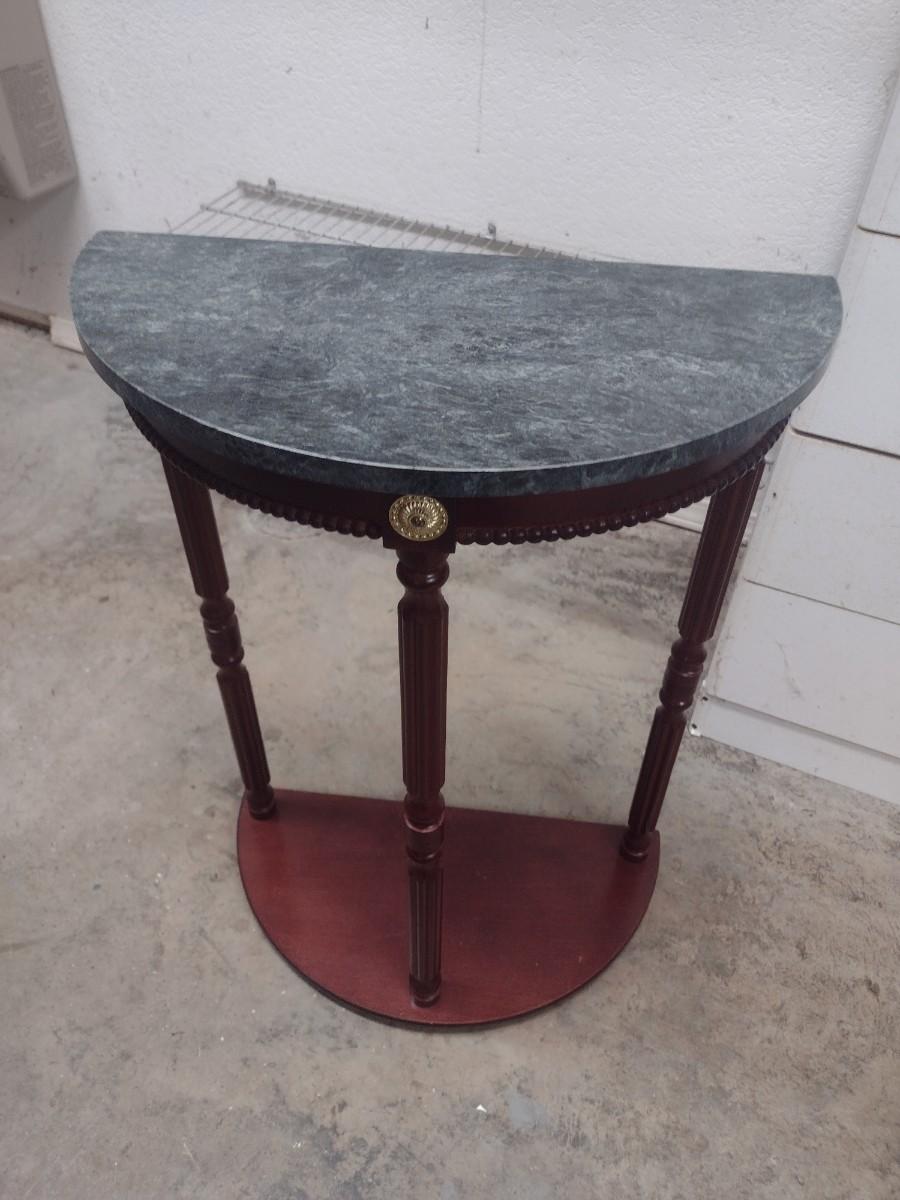 Mahogany Finish Demilune Accent Table with Marble Top