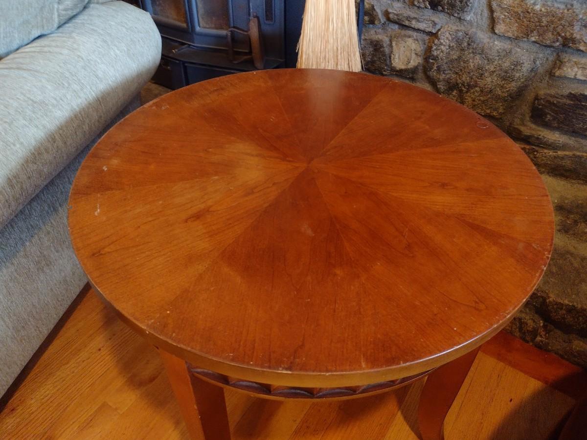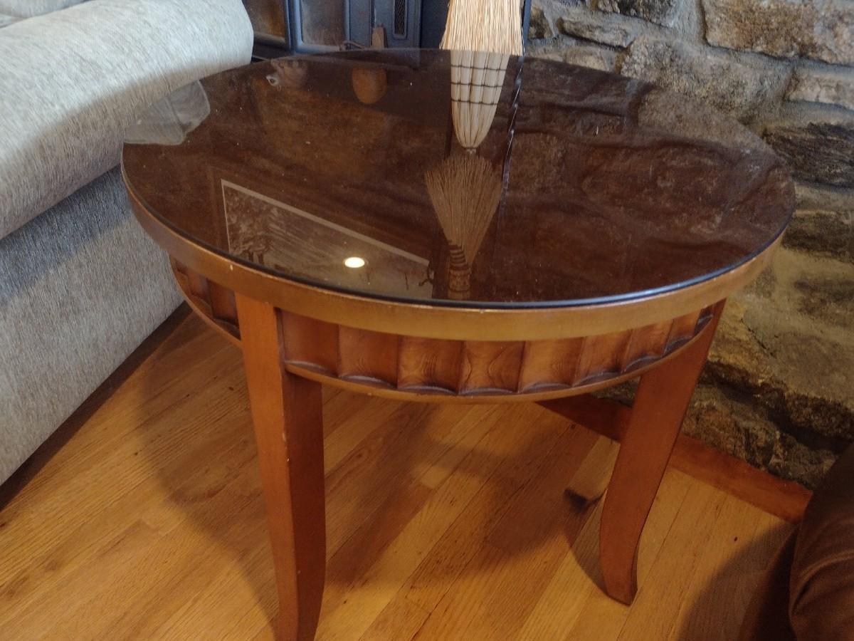 Mahogany Finish Round Side Table with Glass Top Cover Choice B