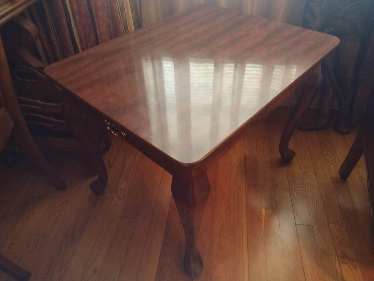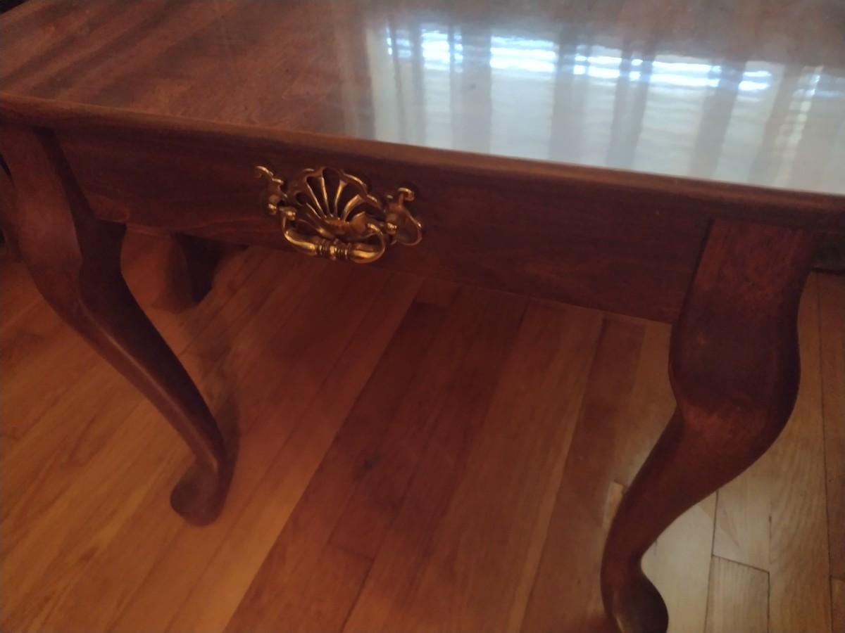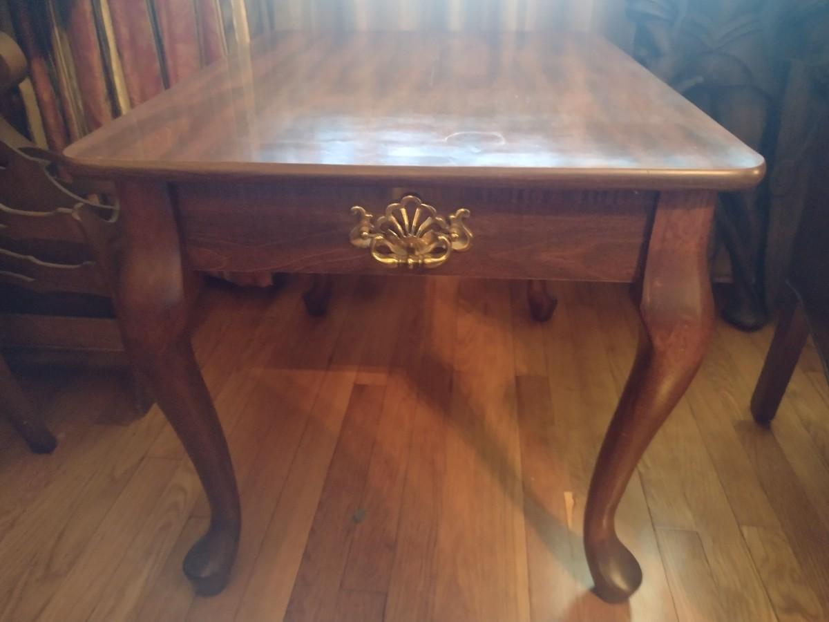 Mahogany Finish Side Table with Faux Drawer