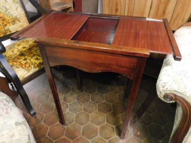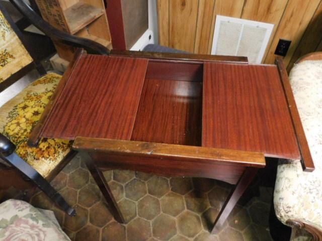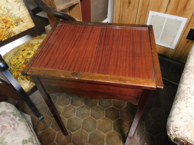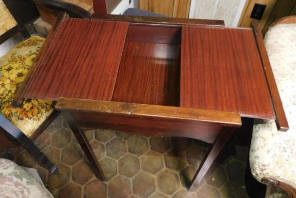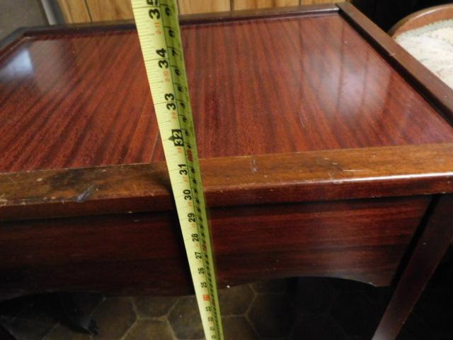 Mahogany Finish Side Table with Dual Slide Top with Hidden Storage 22"x18"x30" expect wear and Scratches