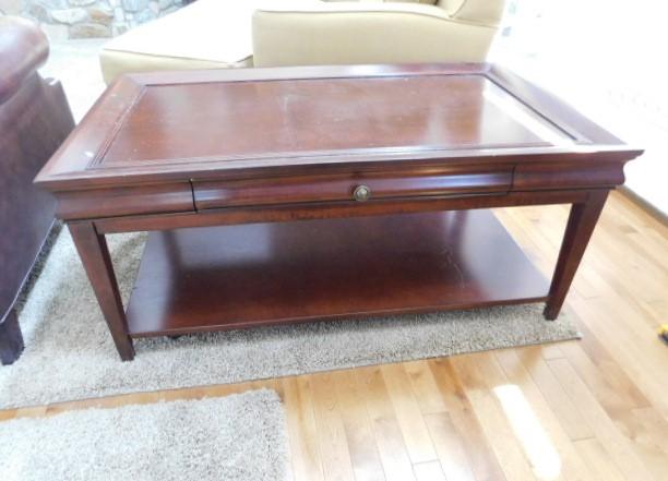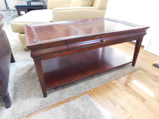 Mahogany Finish Solid Wood Coffee Table with Storage Drawer 44"x26"x19" may have some scratches or wear to finish main floor