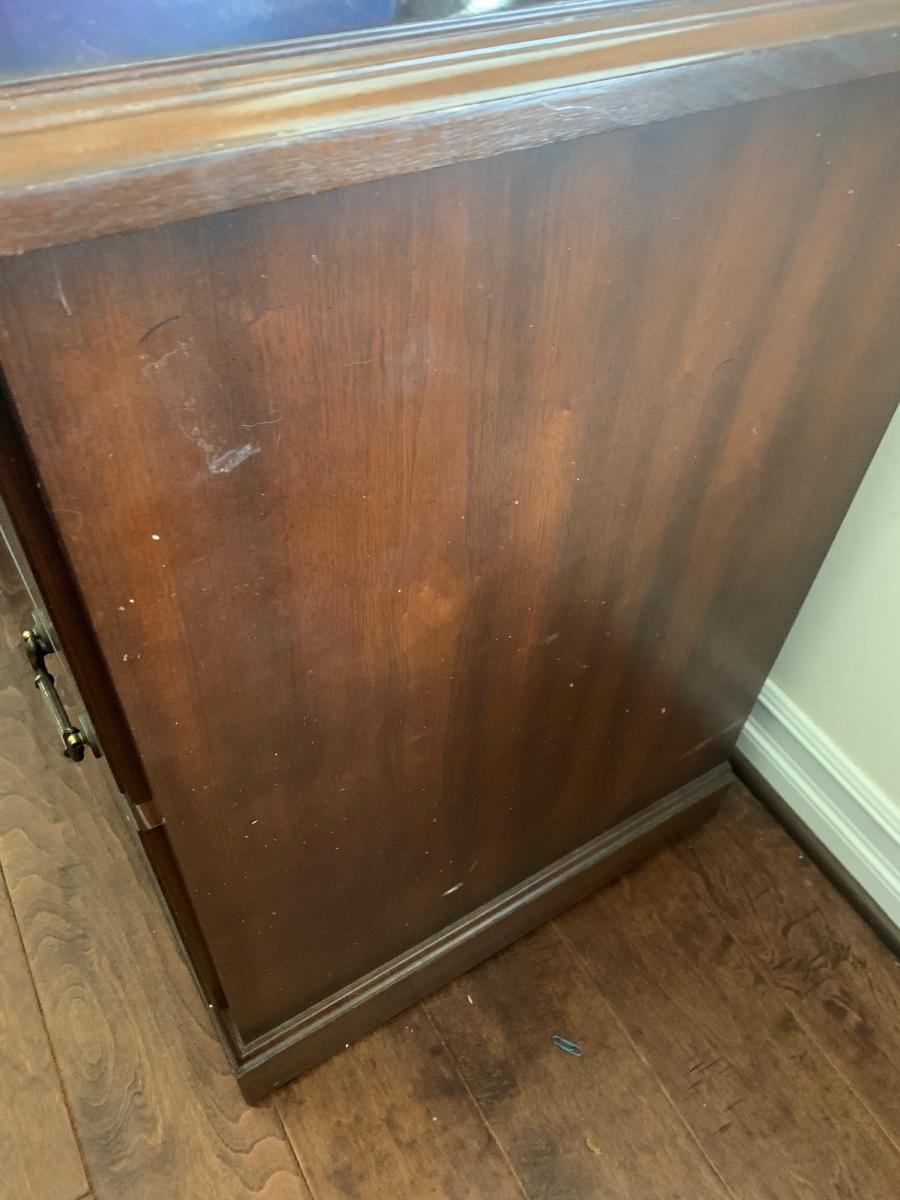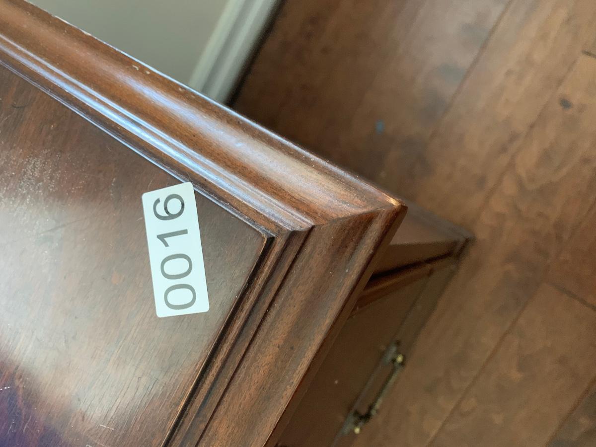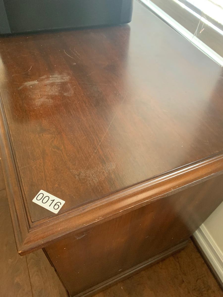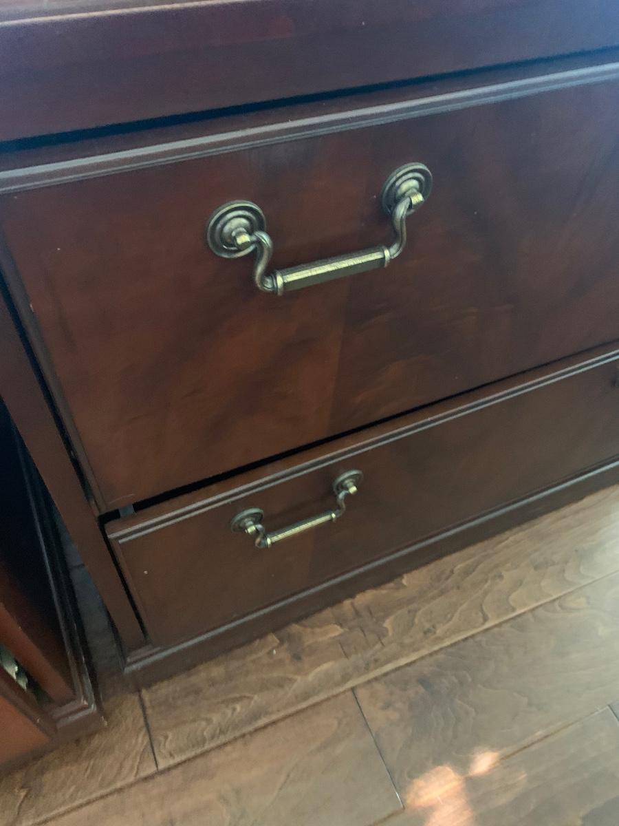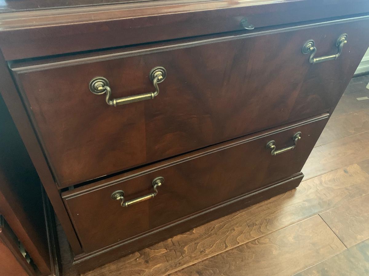 Final photo shows both locking, lateral file cabinets we have in the auction so you can see contrast in wood tone. You are bidding ONLY On the piece on the right (lot 16).