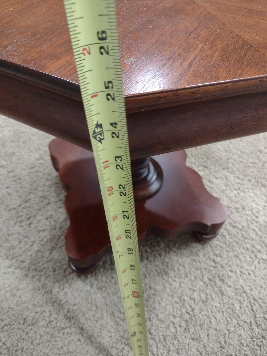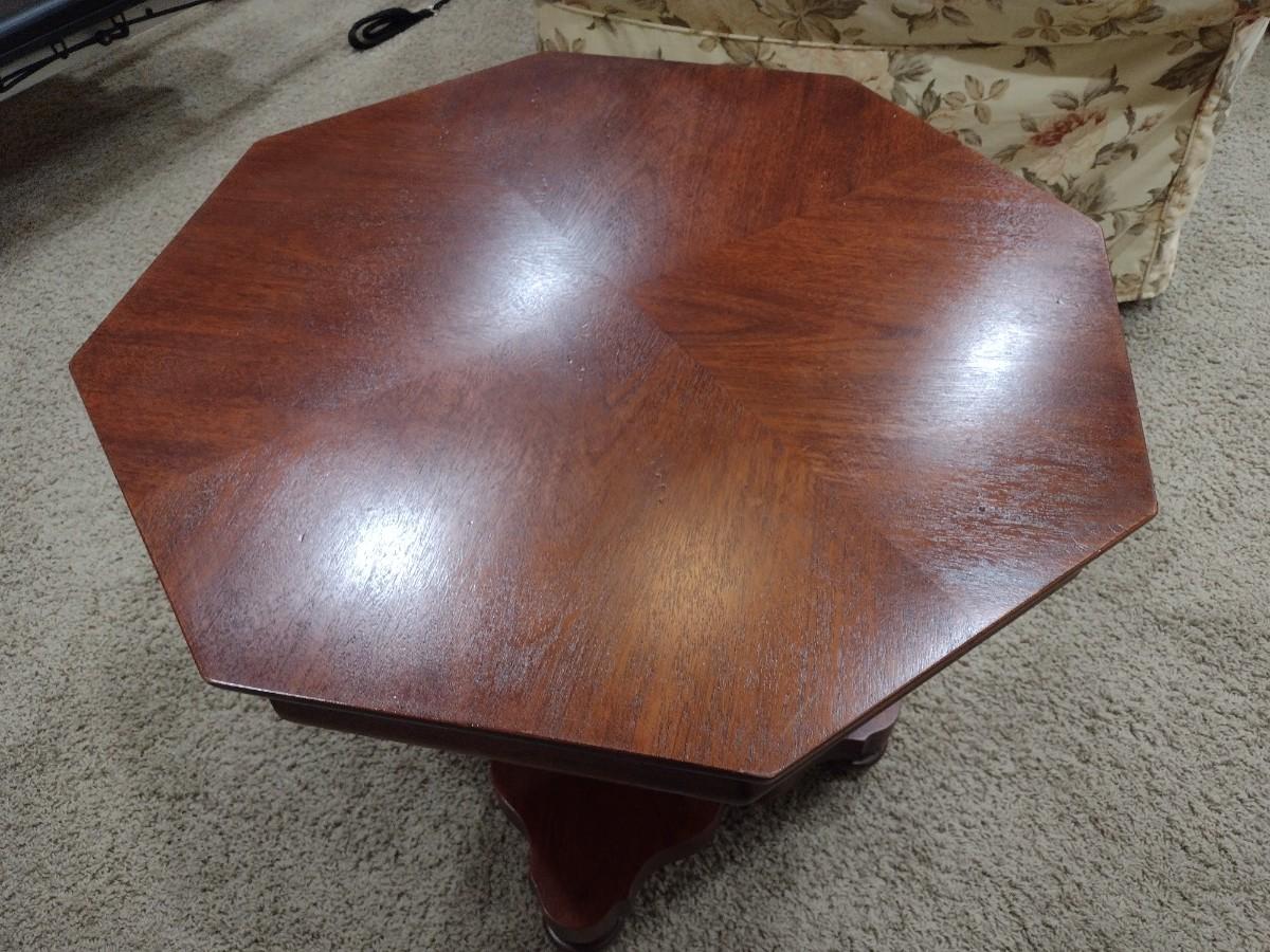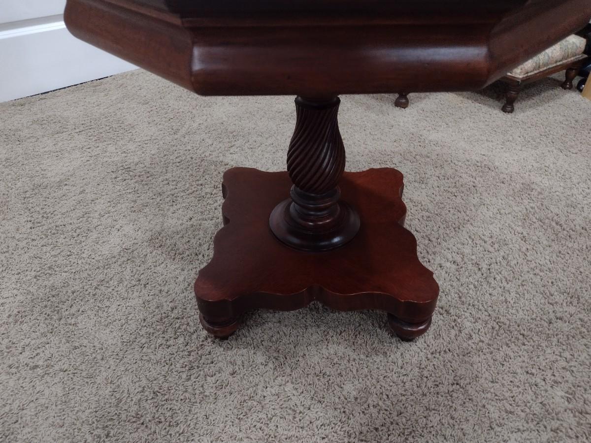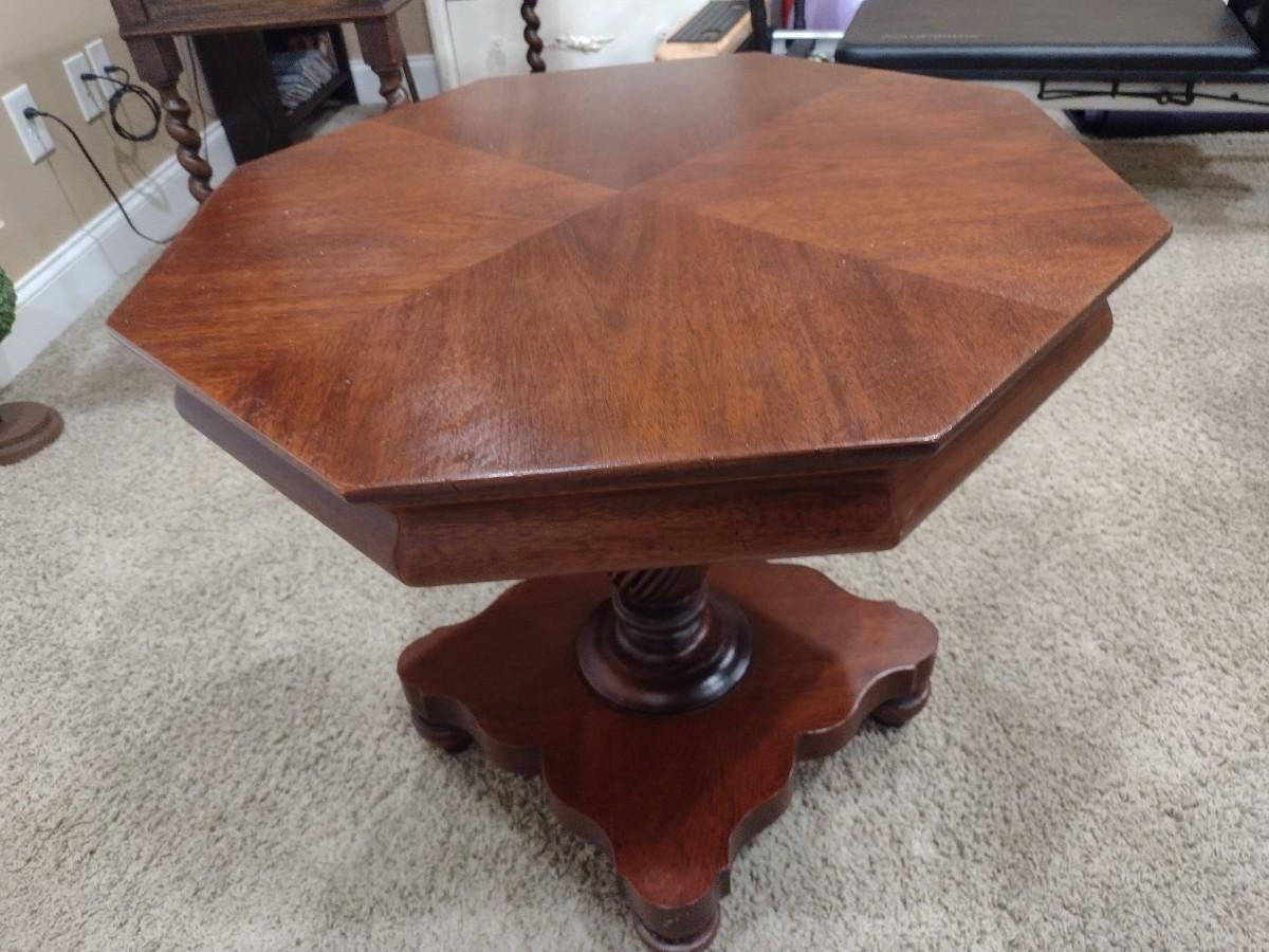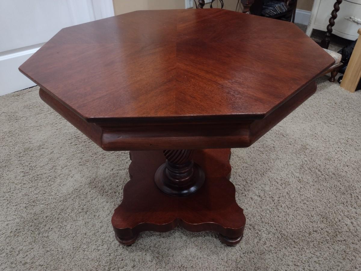 Mahogany Octagonal Pedestal Side Table. Upstairs item.