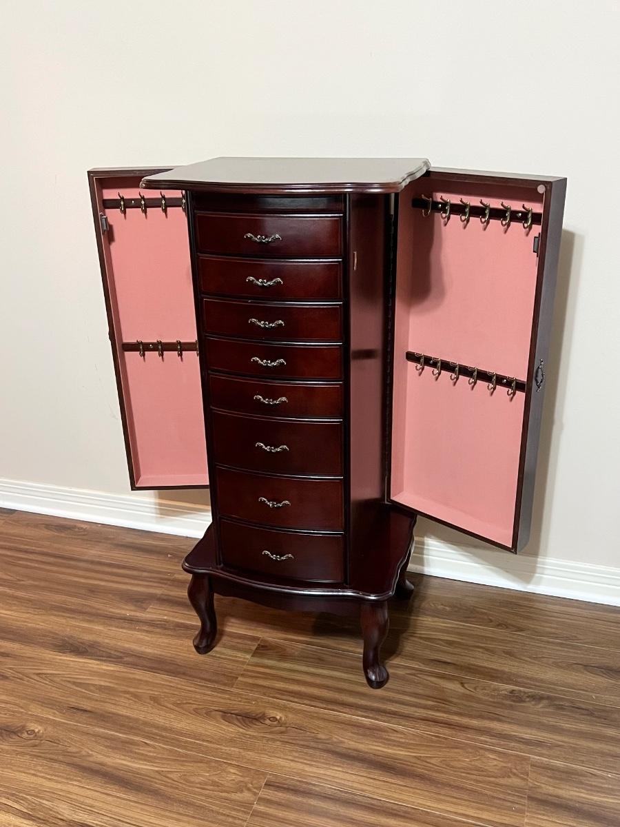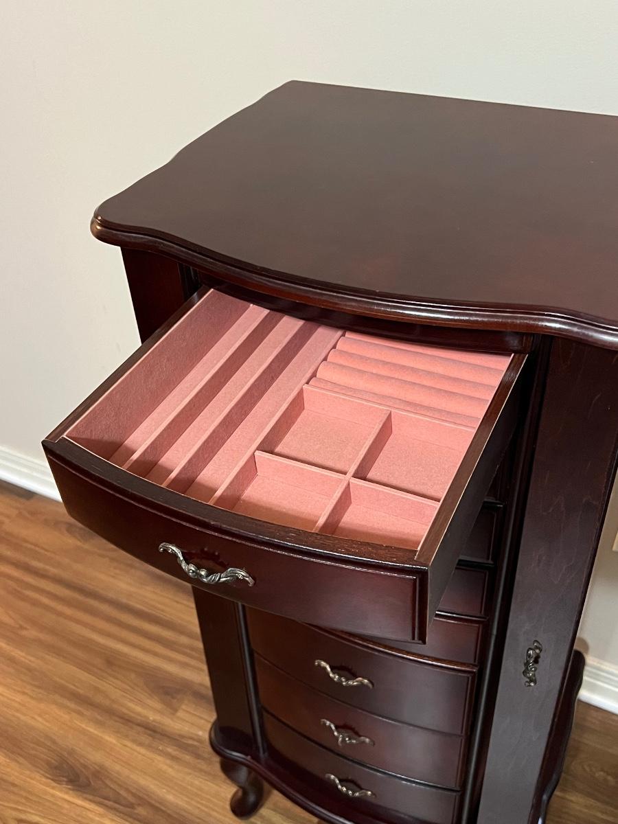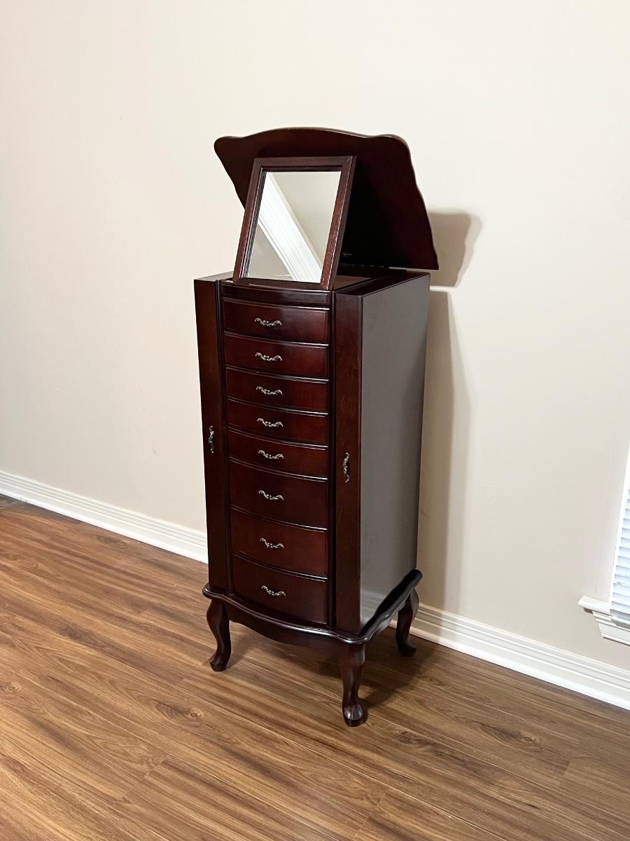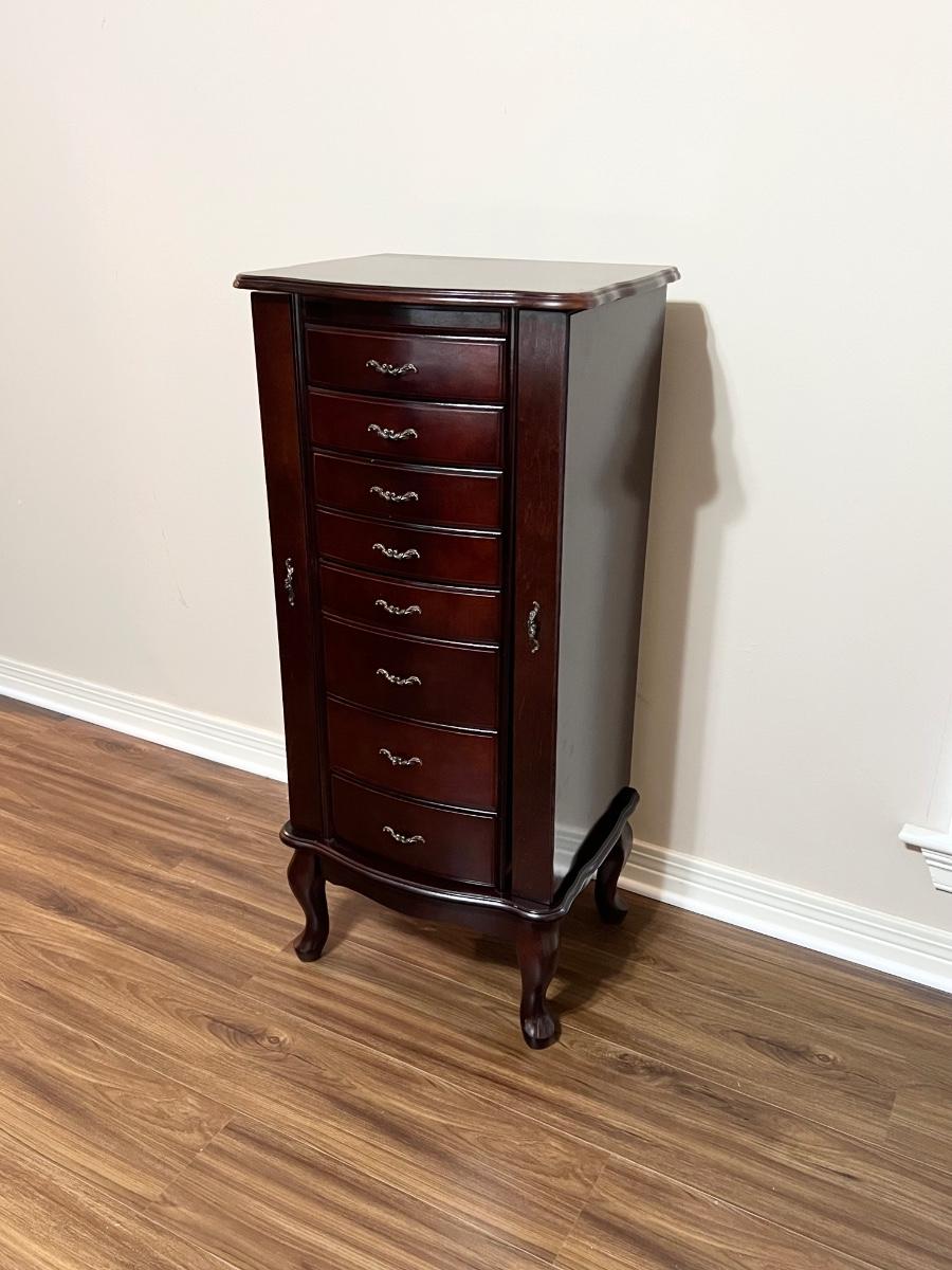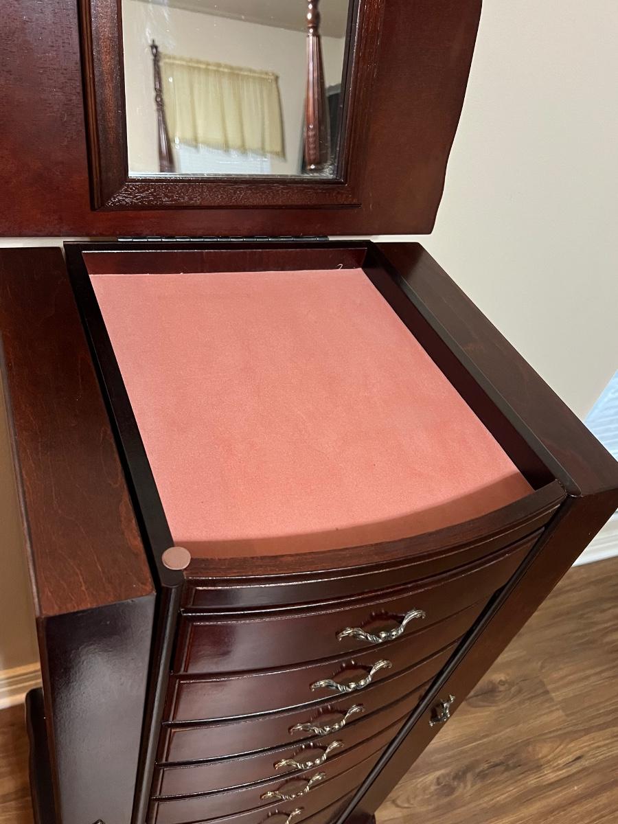All drawers have velvet lining & slide easy ~ Has minor wear do to use ~ Top needs to be tightened a little bit ~ 41” H x 19” W x 16” D