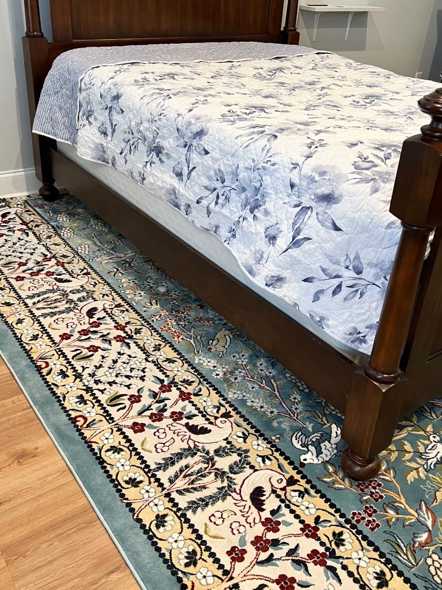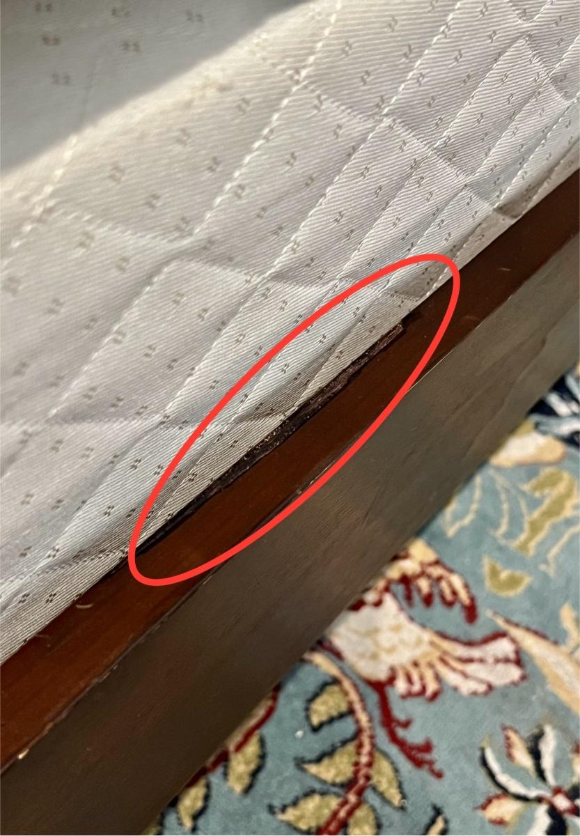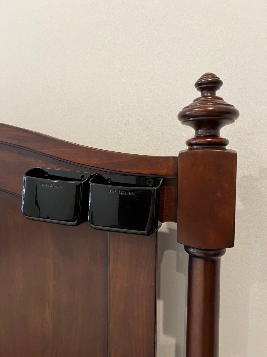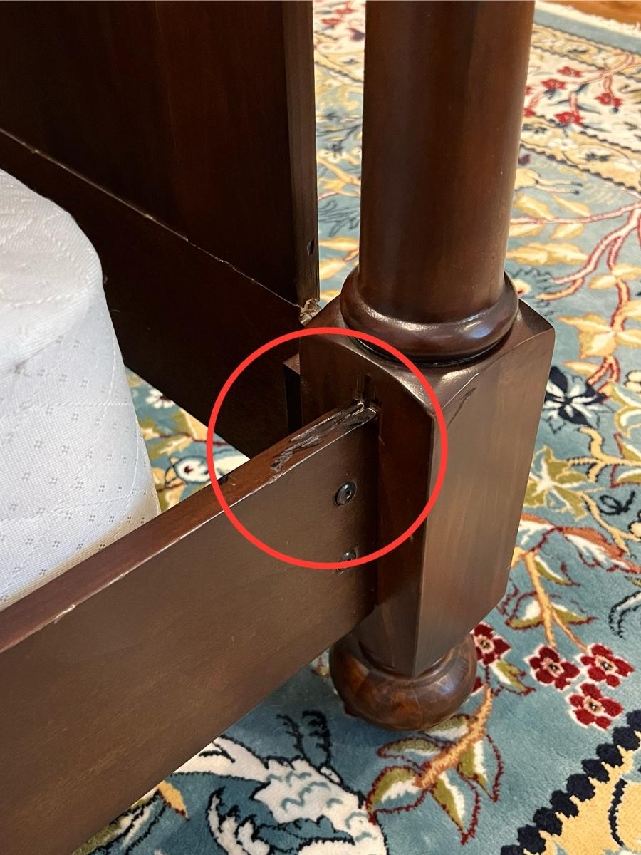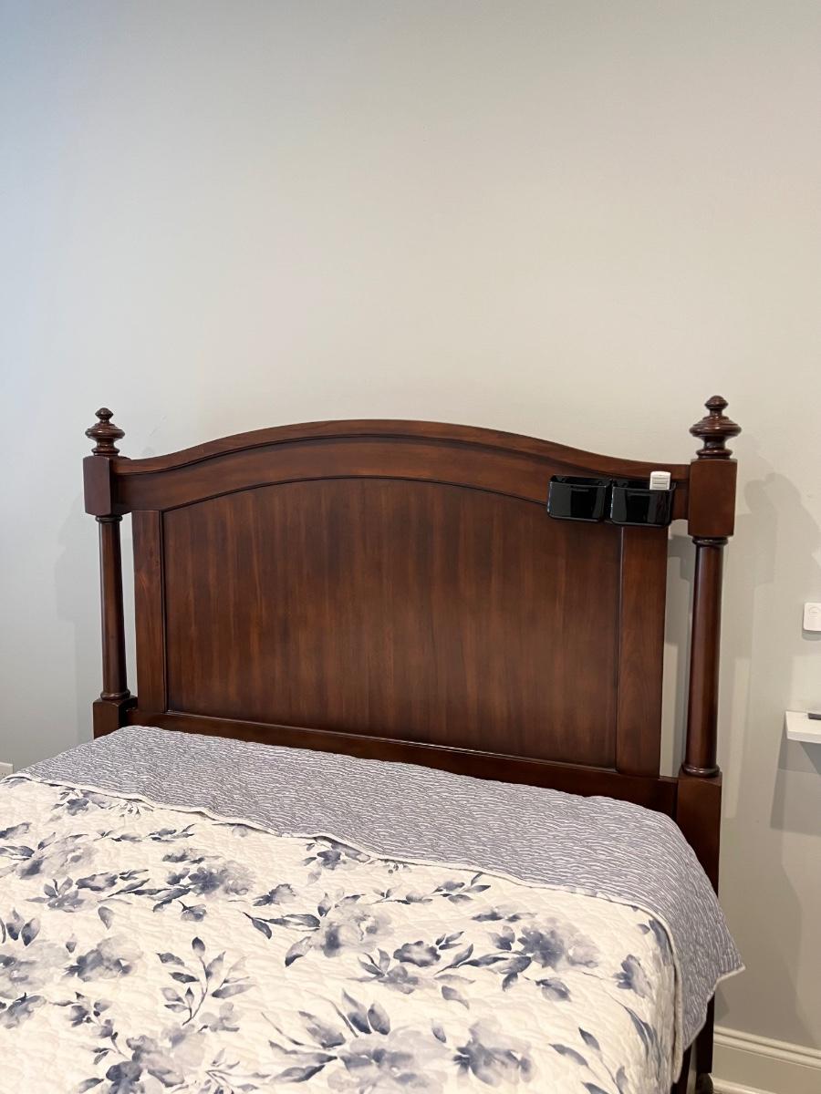 Bed has 2 Black Remote Storage Mounts attached to headboard (see photos) ~ Rug & bedding sold separately ~ Has a few minor damage spots from use, nothing major (see photos) ~ Bed has slats but possibly needs new ones or repair to the ones included due to damage ~ Mattress & box spring not included ~ Headboard = 61.5” H