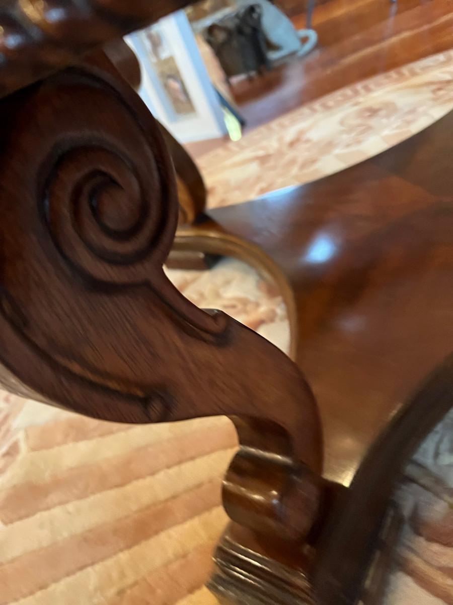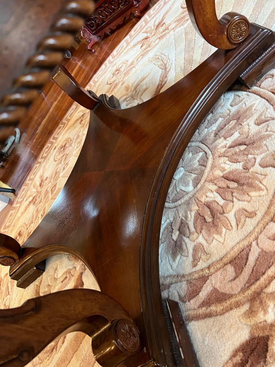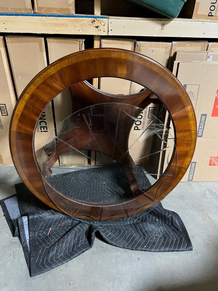 Mahogany Round Coffee Table with Cut Beveled Edge Glass Top