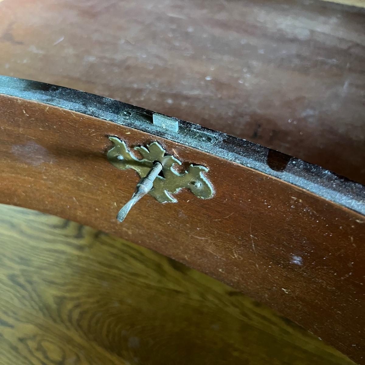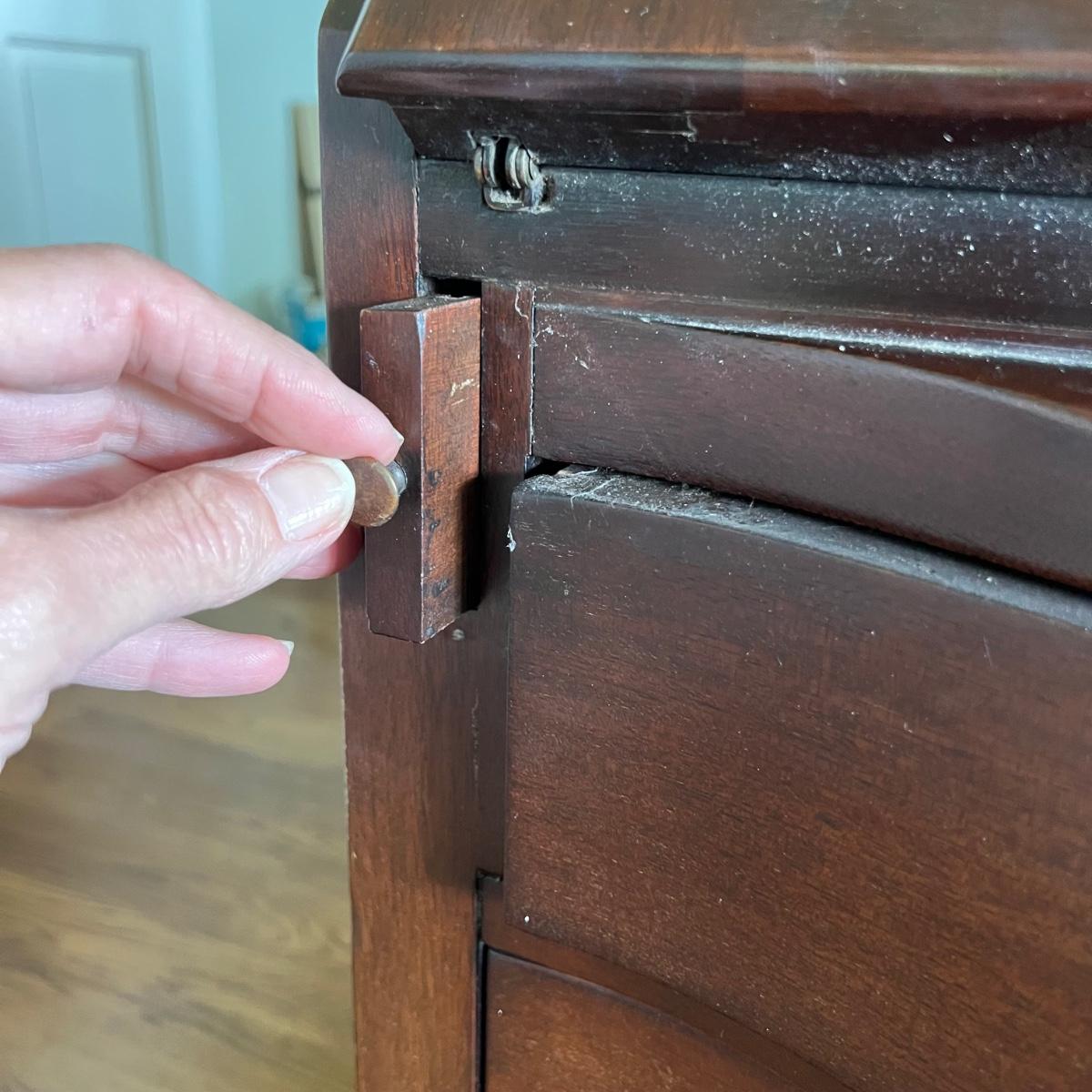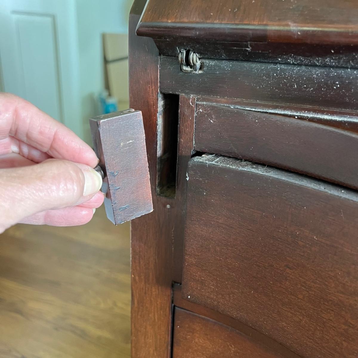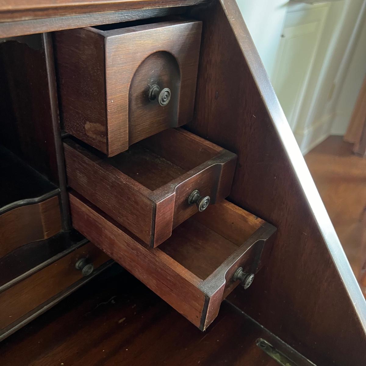 Lovely mahogany secretary with three working keys. This piece has four lockable doors and claw feet. It measures 36” x 20” x 42”H.