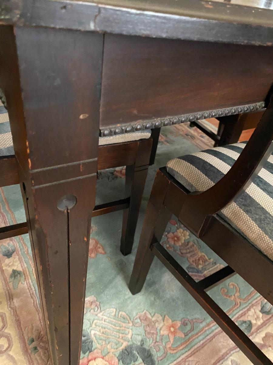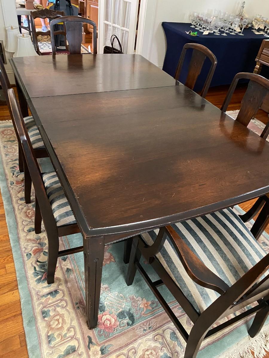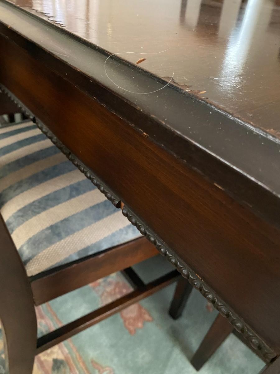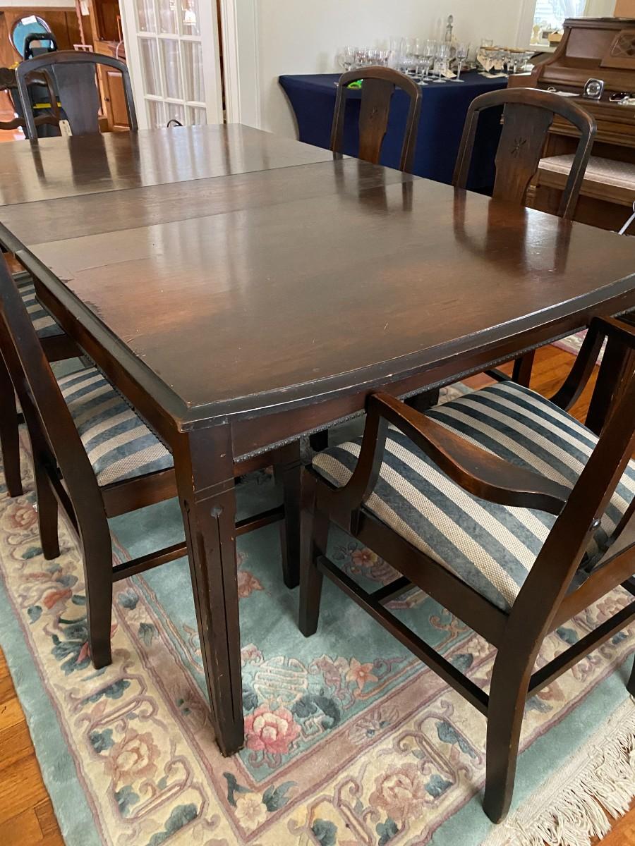 42x69x29 Mahogany Table and 6 Chairs, 1 Removable Leaf, Minor Scratches
