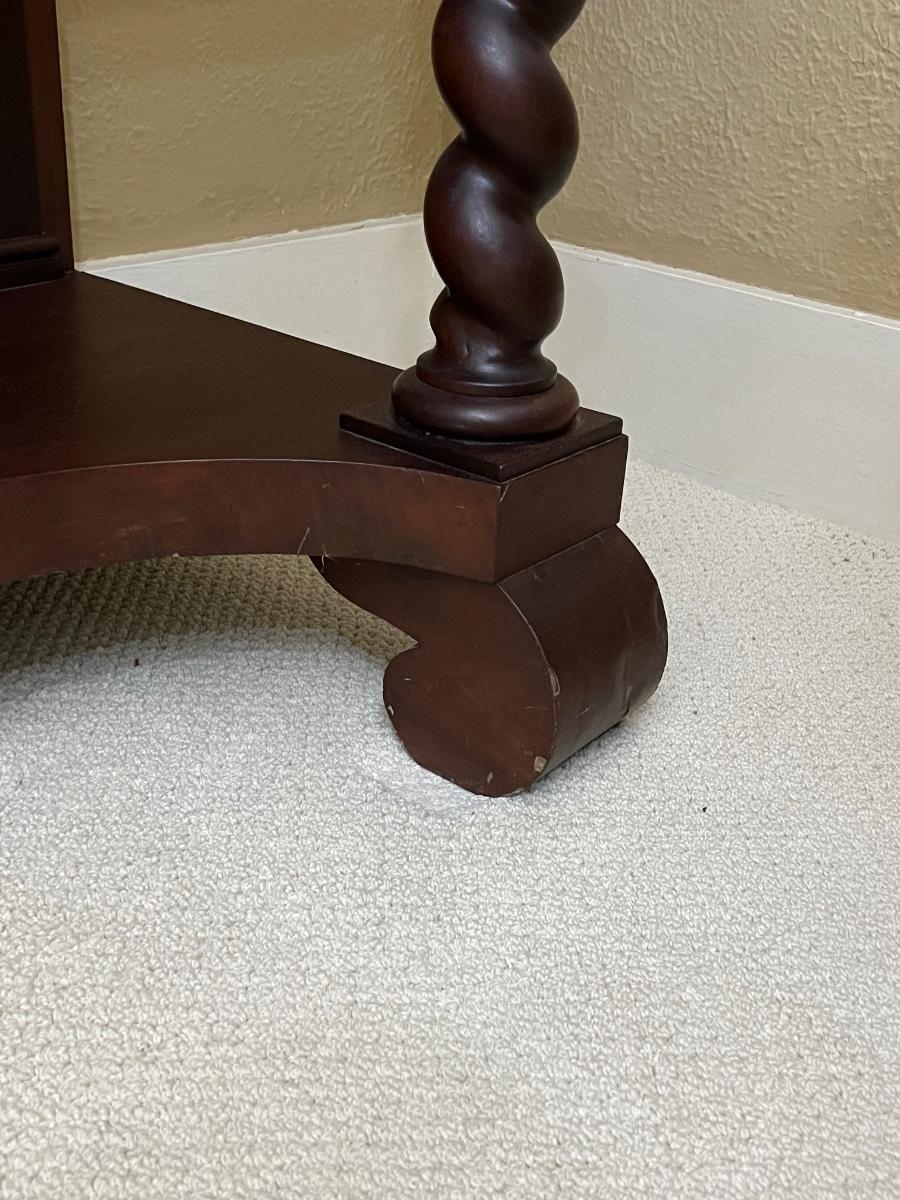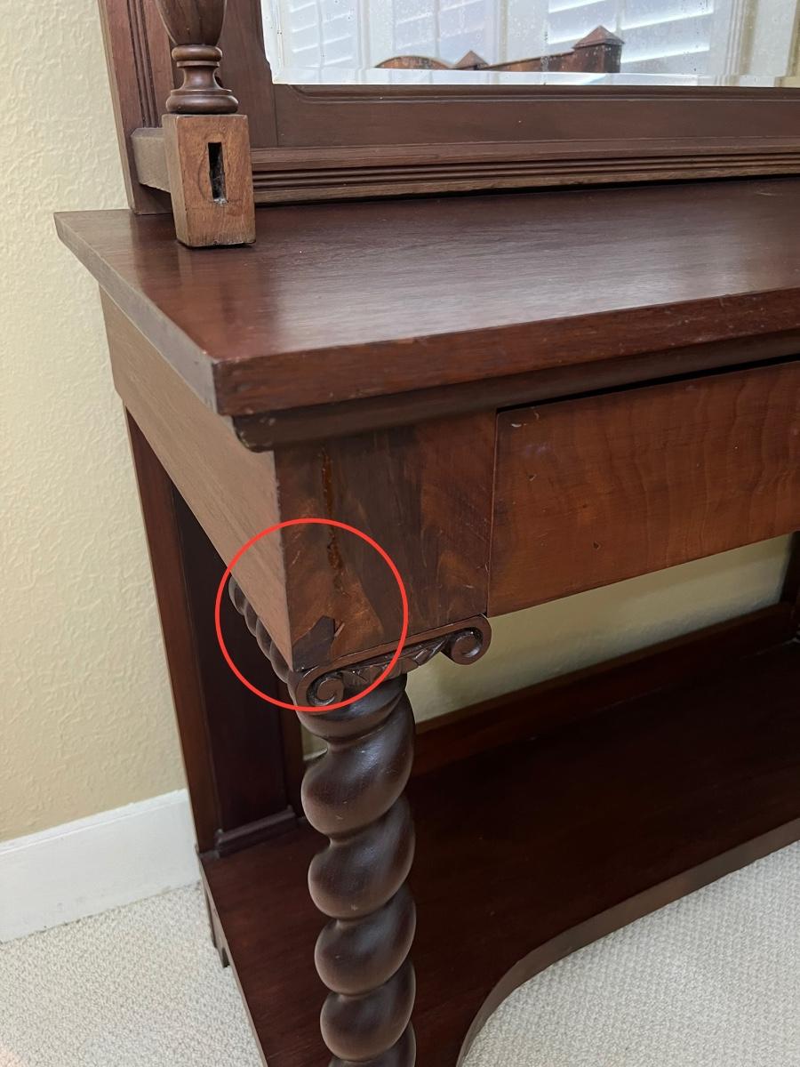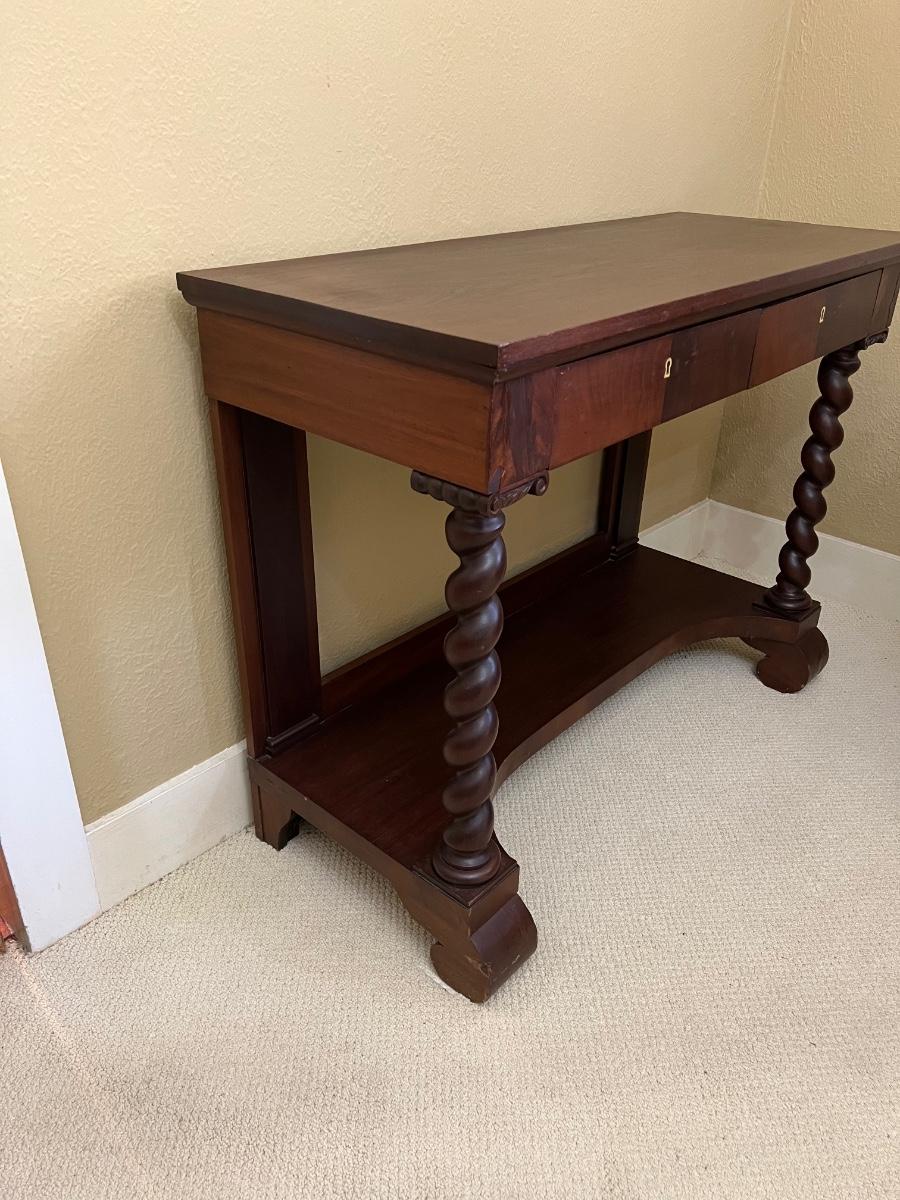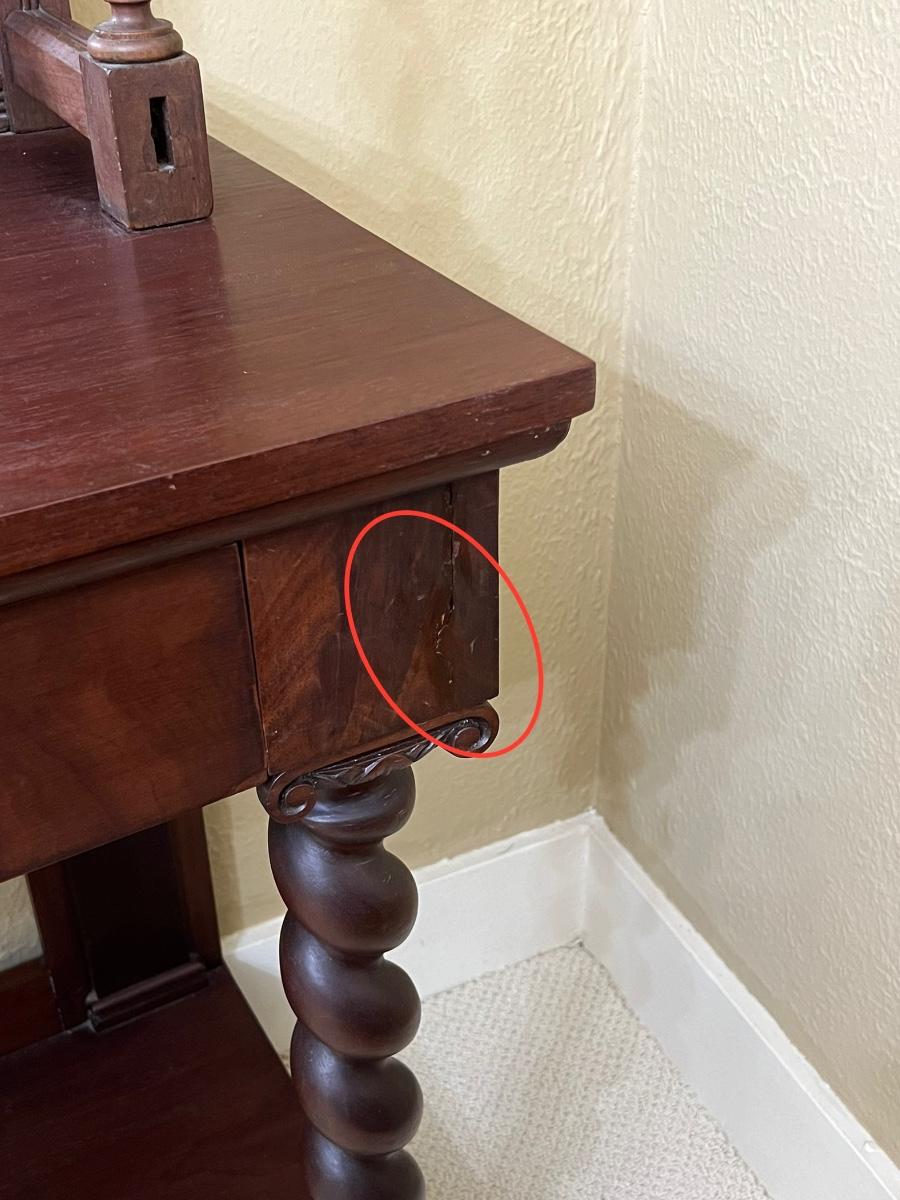 Drawers open & close easily ~ Does not have key ~ Veneer is missing & starting to peel in spots (see photos) ~ 38” H x 50” W x 22” D