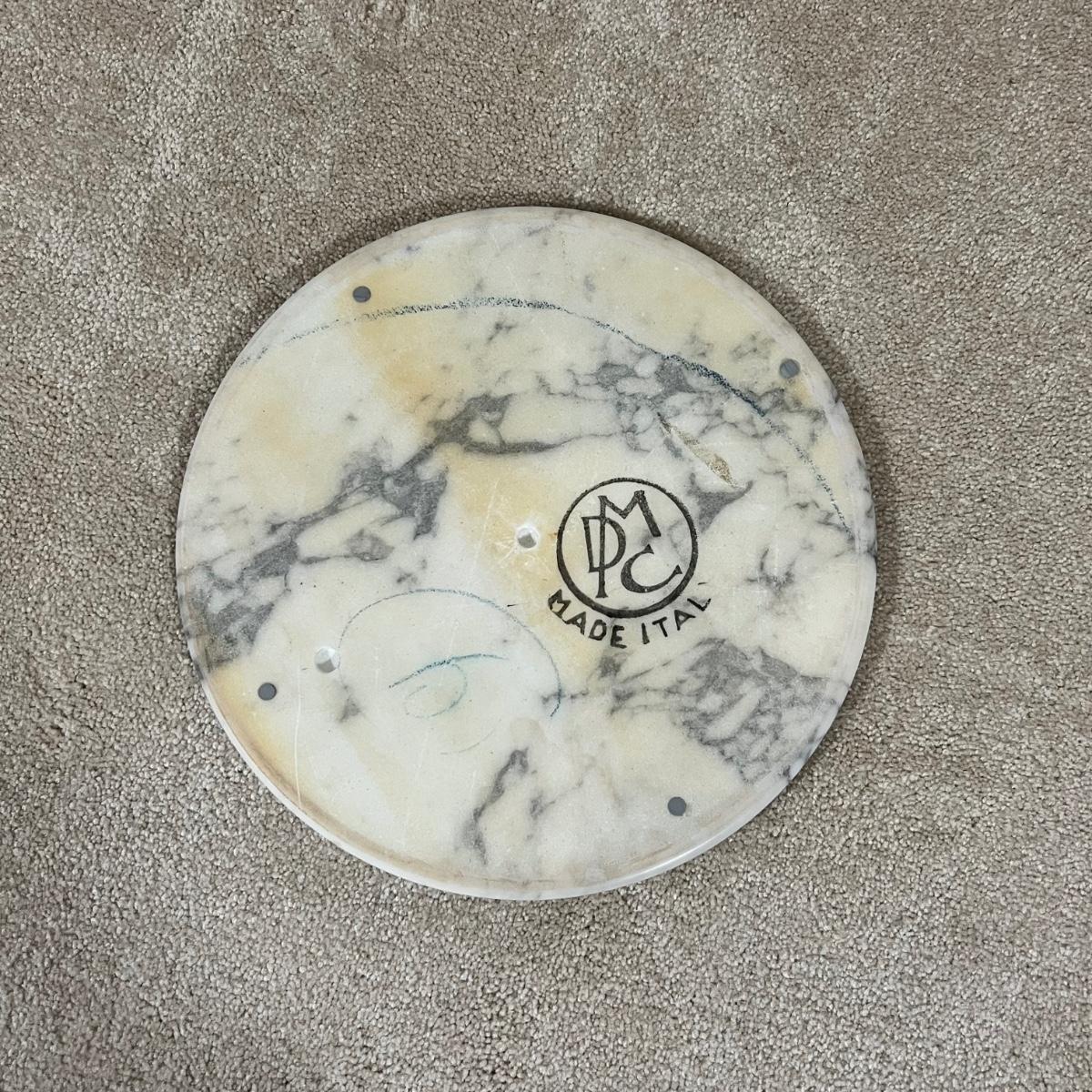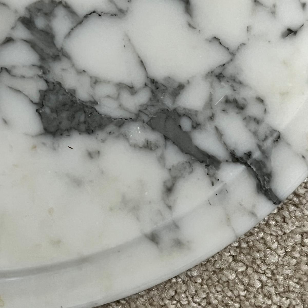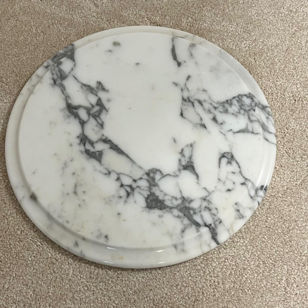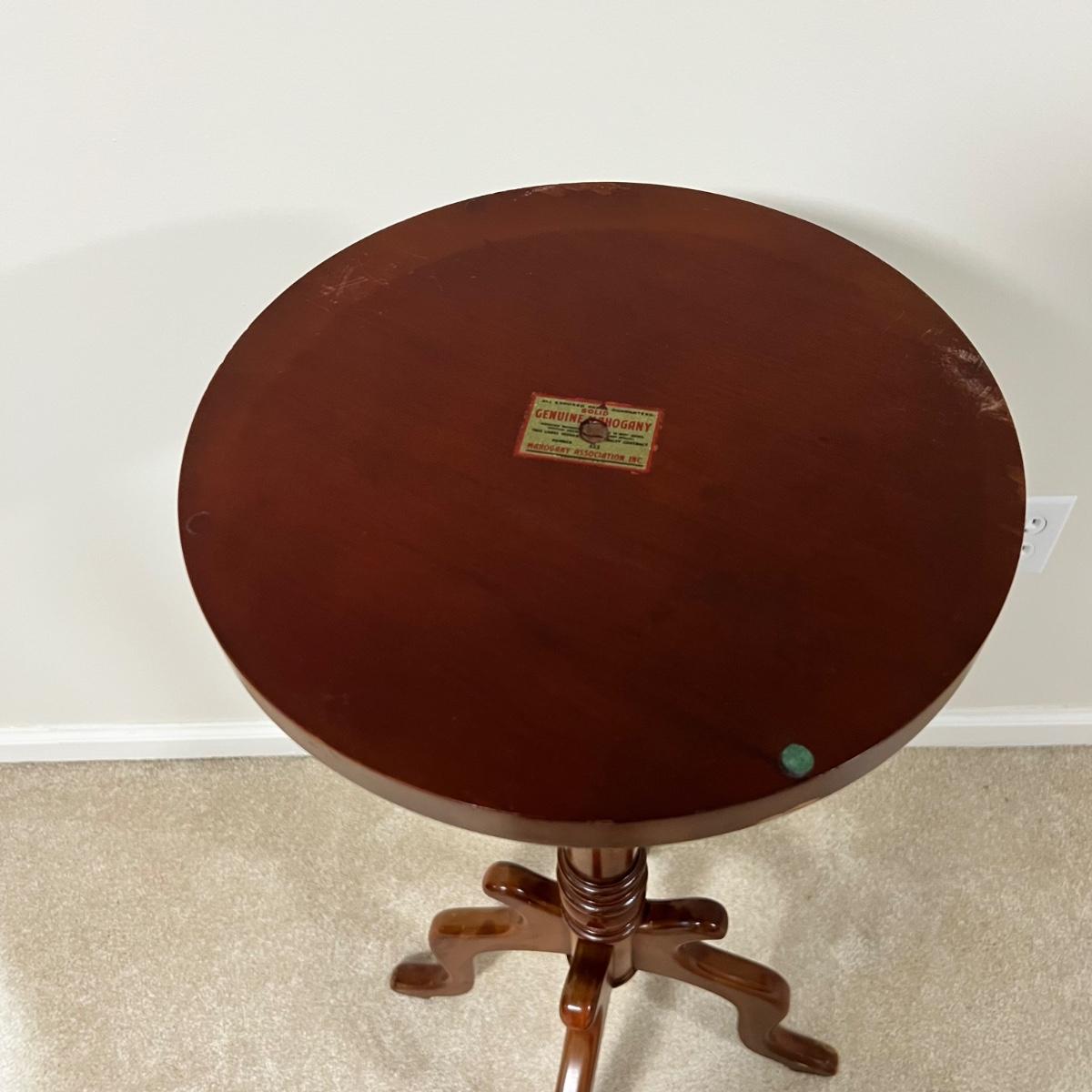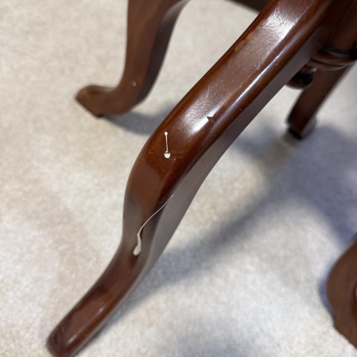 Rich solid mahogany plant stand has a stunning white with grey veins marble top. A few paint drops on a leg should be easy to scrape off.