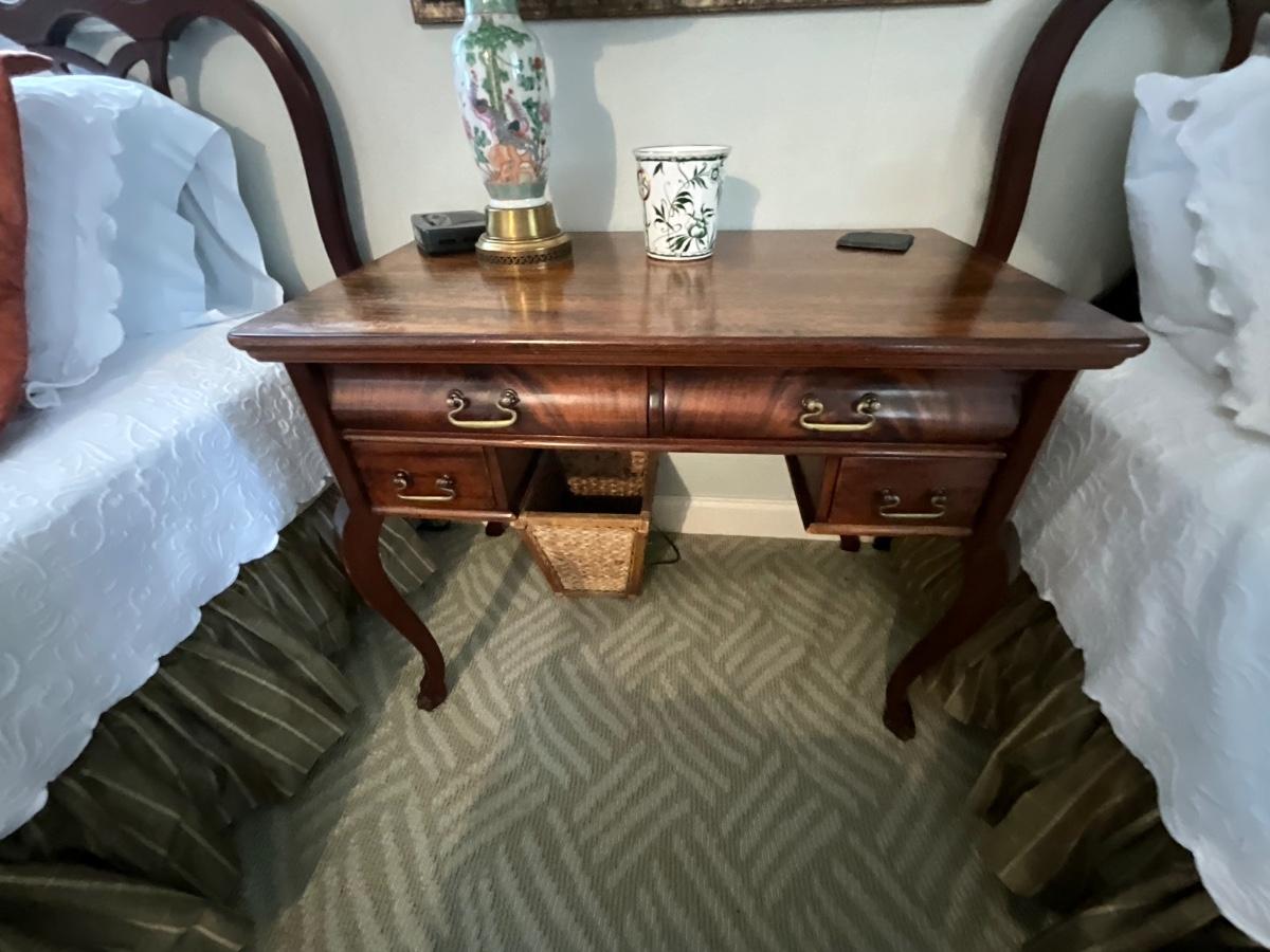 Mahogany Writing Desk and Lamp