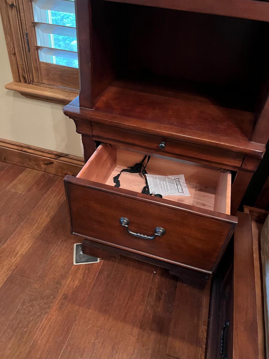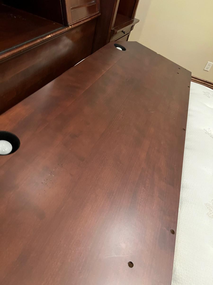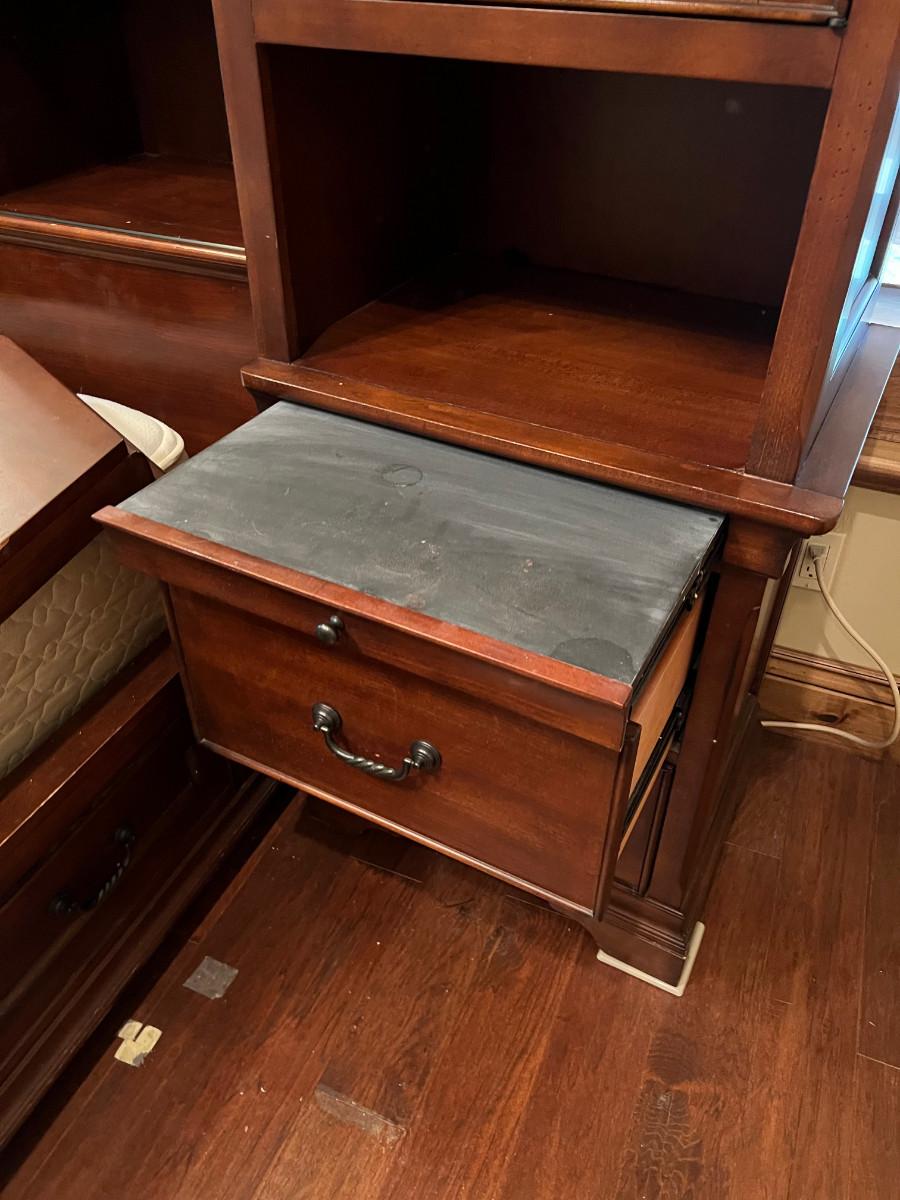 Bedroom set includes mattress all pieces shown included. One corner of the set has some damage to finish. Otherwise function as it should with normal wear and tear for a 30 year old set. No shipping on this item. If purchased buyer will need to arrange pick up and loading help.