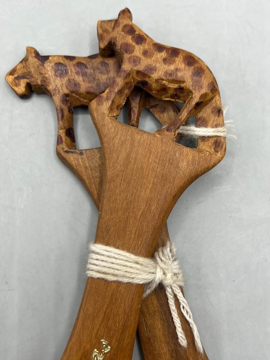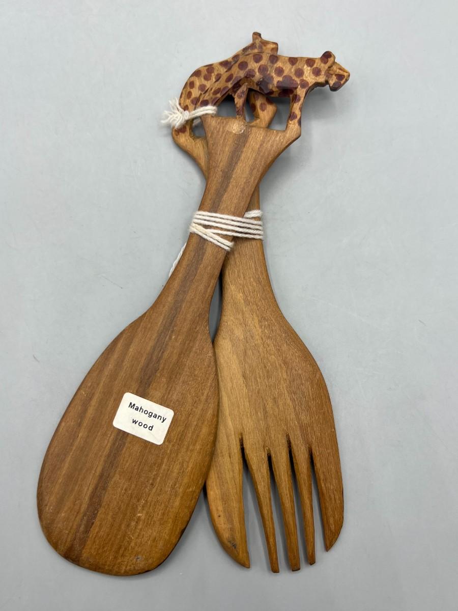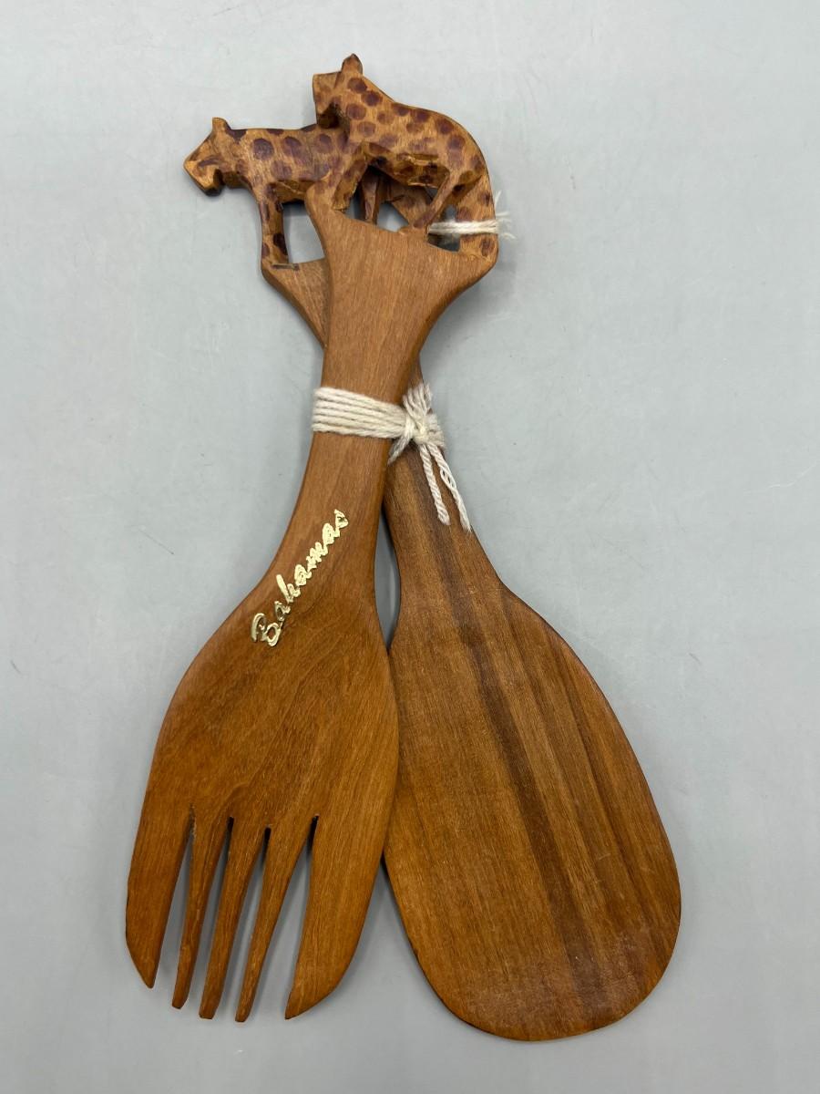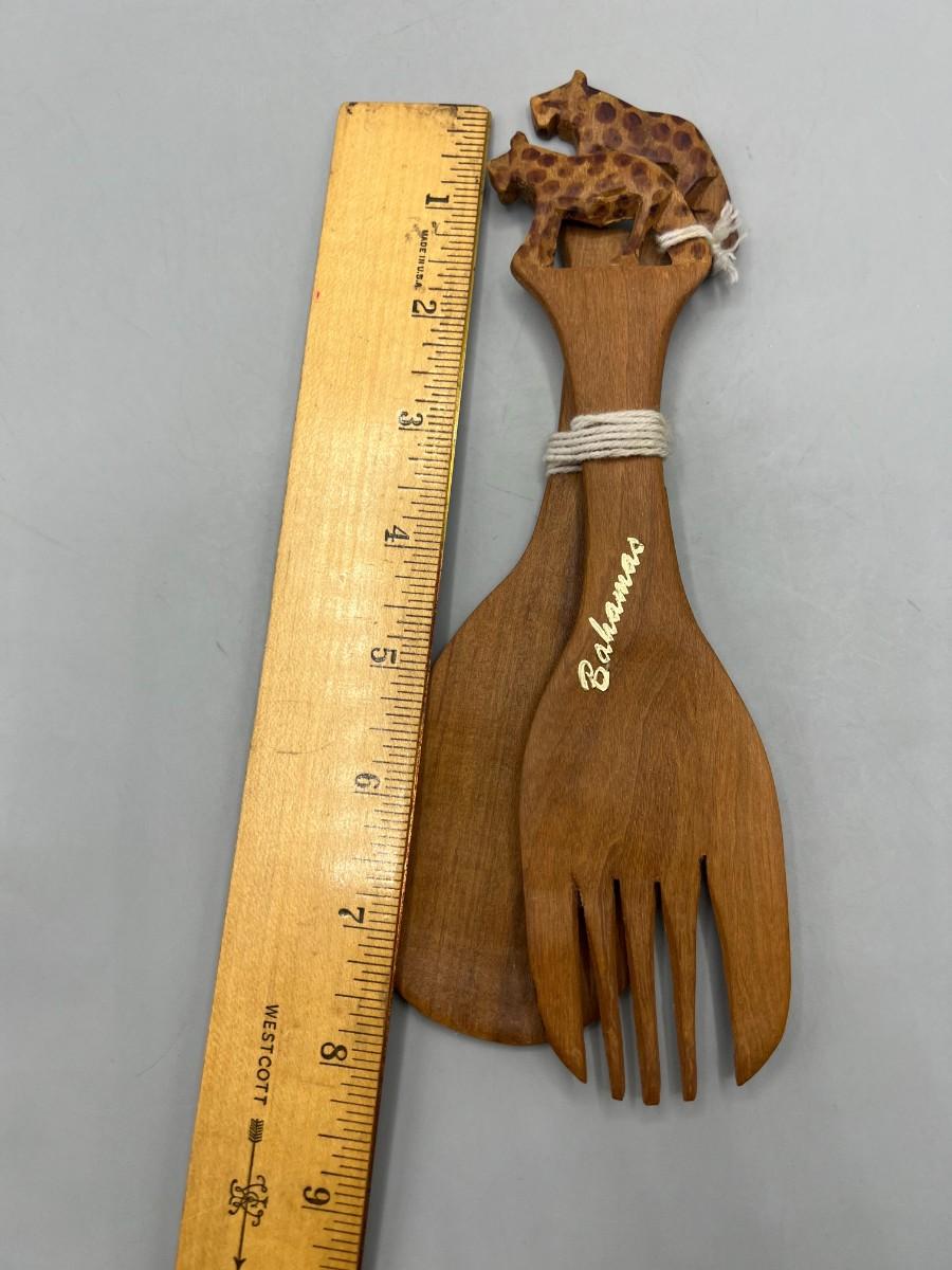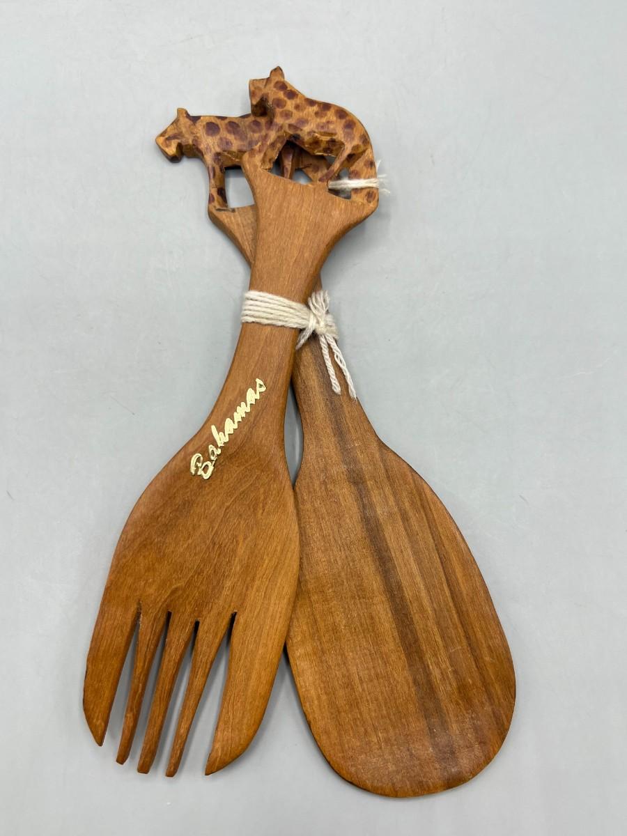Mahogony Wood Salad Serving Tongs Bahamas Carved Animal Handles Vacation Souvenir