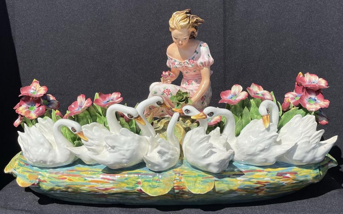 "Maiden with Swans" by Mollica Bros. Ceramic planter. Made in italy. This item is previously owned and not new. Item is being listed and sold as-is.