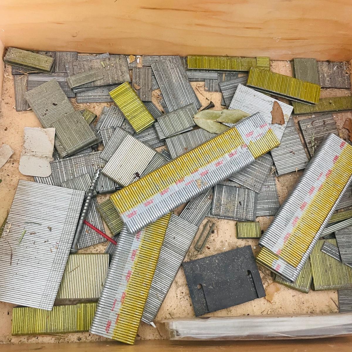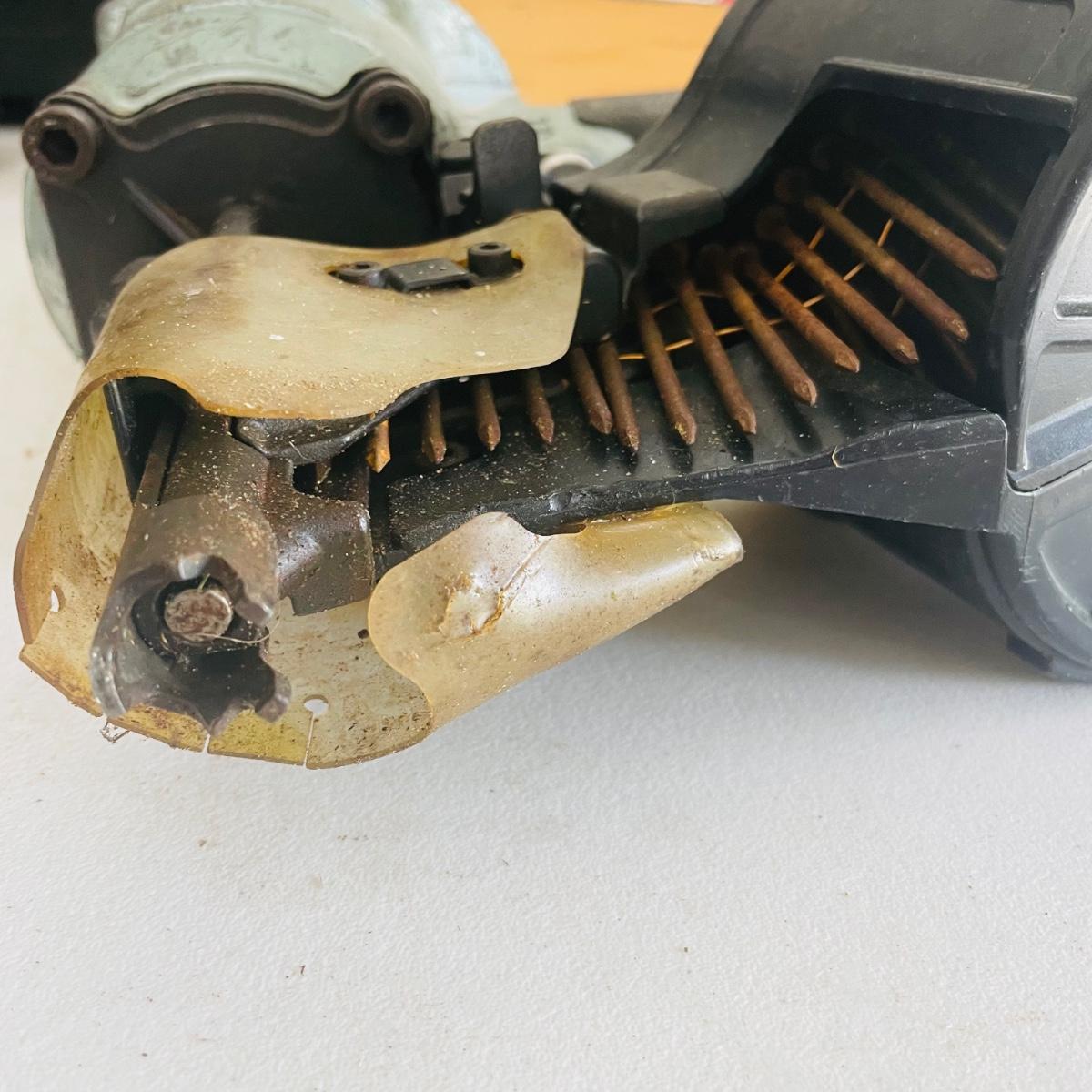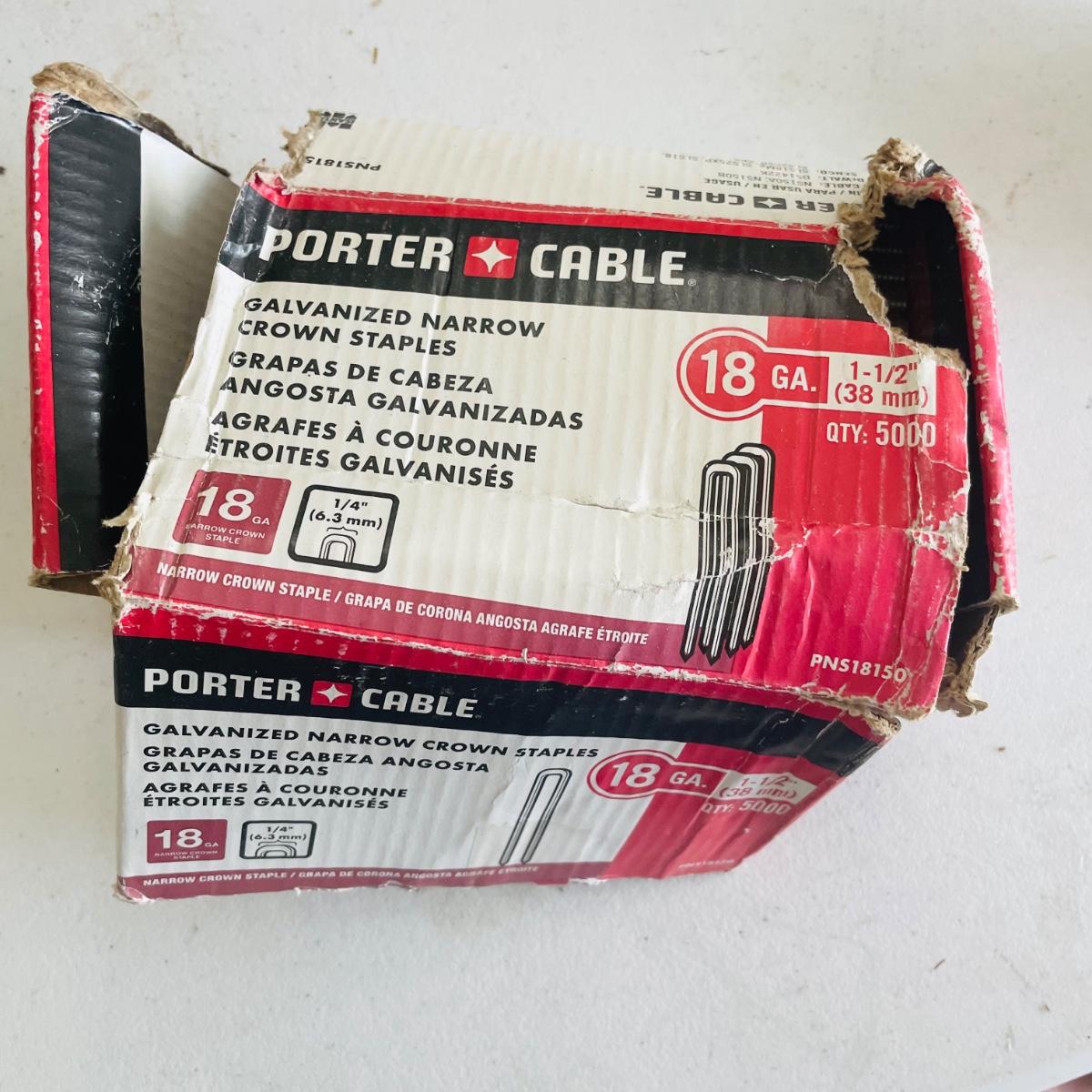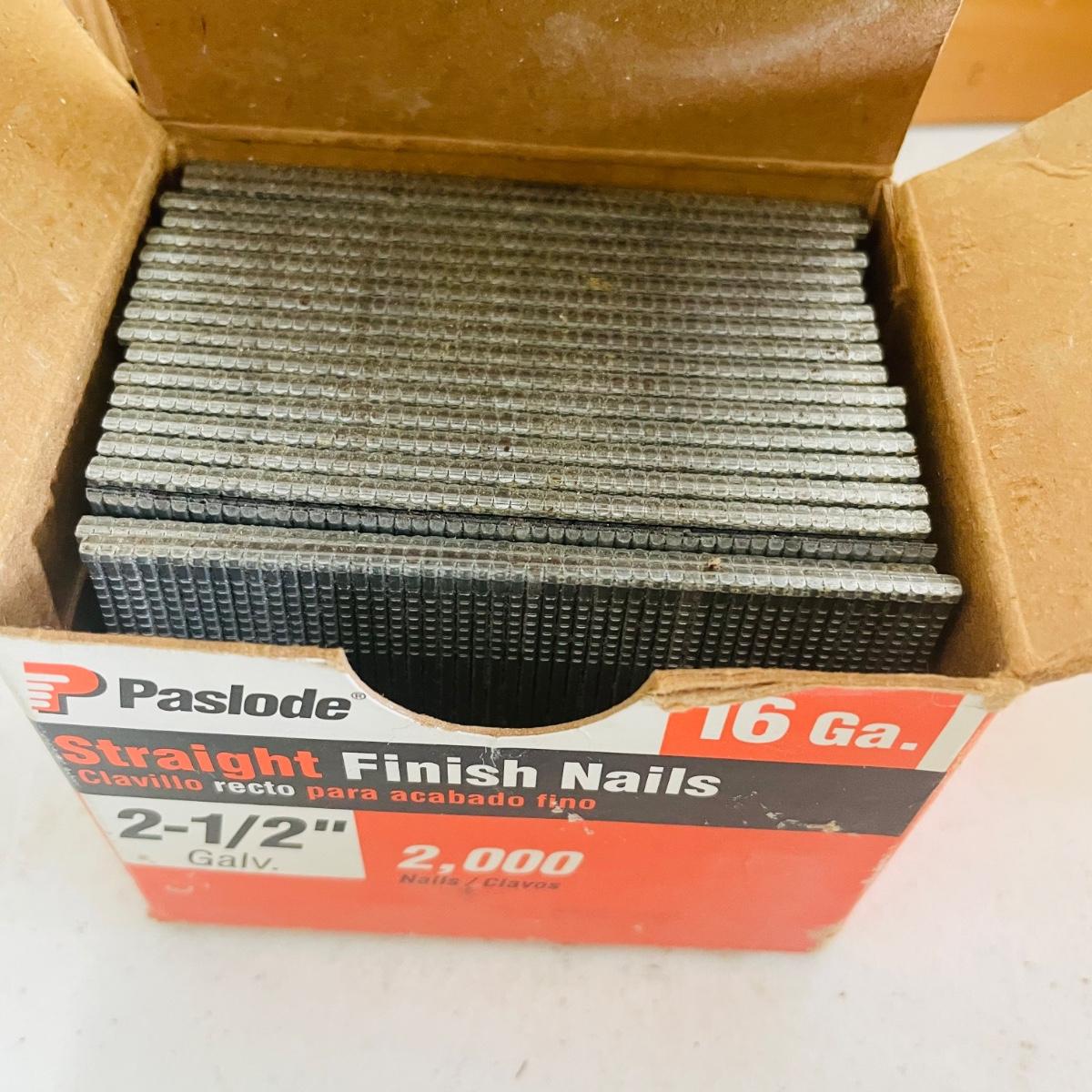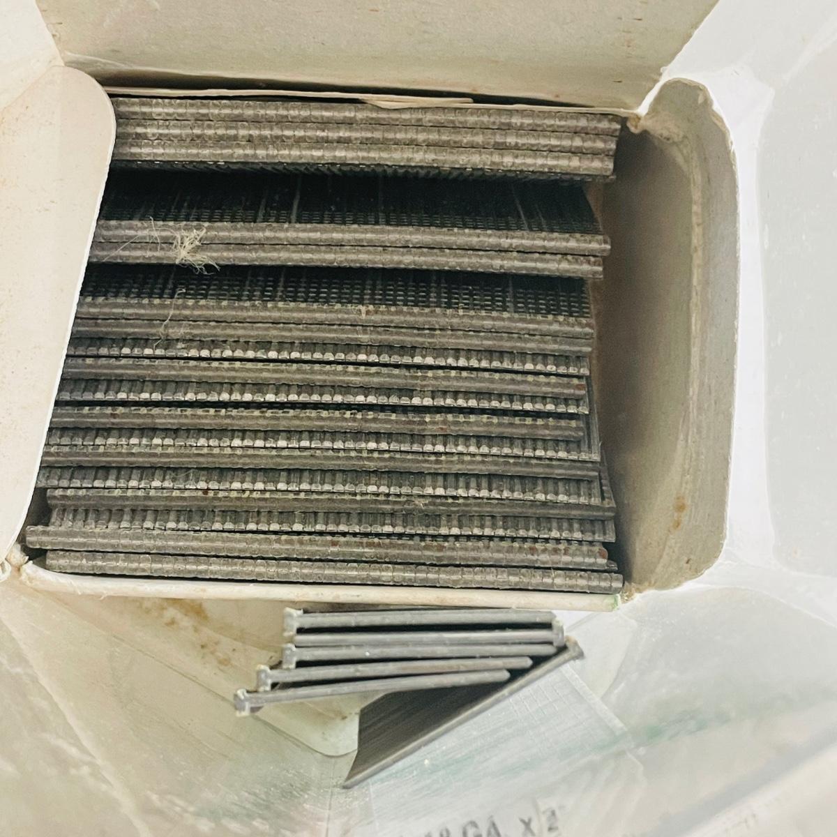 This lot includes 3 different nail guns and a large assortment of nails to accompany the guns. Nail guns include: a Porter Cable 18 ga. nail gun with case. A Hitachi 16 ga. - 2 1/2” nail gun with single or multiple nail option and a Hitachi NV83A2, 3 1/4” coil nailer. All 3 nail guns are used and unable to verify the working condition. The lot also includes a wooden box and Plano tool box full of Nail gun nails including Porter Cable 18ga x 1 1/2” and 2” galvanized Brad nails, 16ga 1 1/4” finishing nails. 18 ga. galvanized crown staples sizes 1/2”, 1” and 1 1/2”. Dewalt 18ga x 1” narrow crown staples and Paslode 16 ga x 2 1/2” finishing nails. The red Plano tool box is used and includes 2 rolls of nails for the Hitachi coil nailer. Two containers of nails gun nails are also included.
