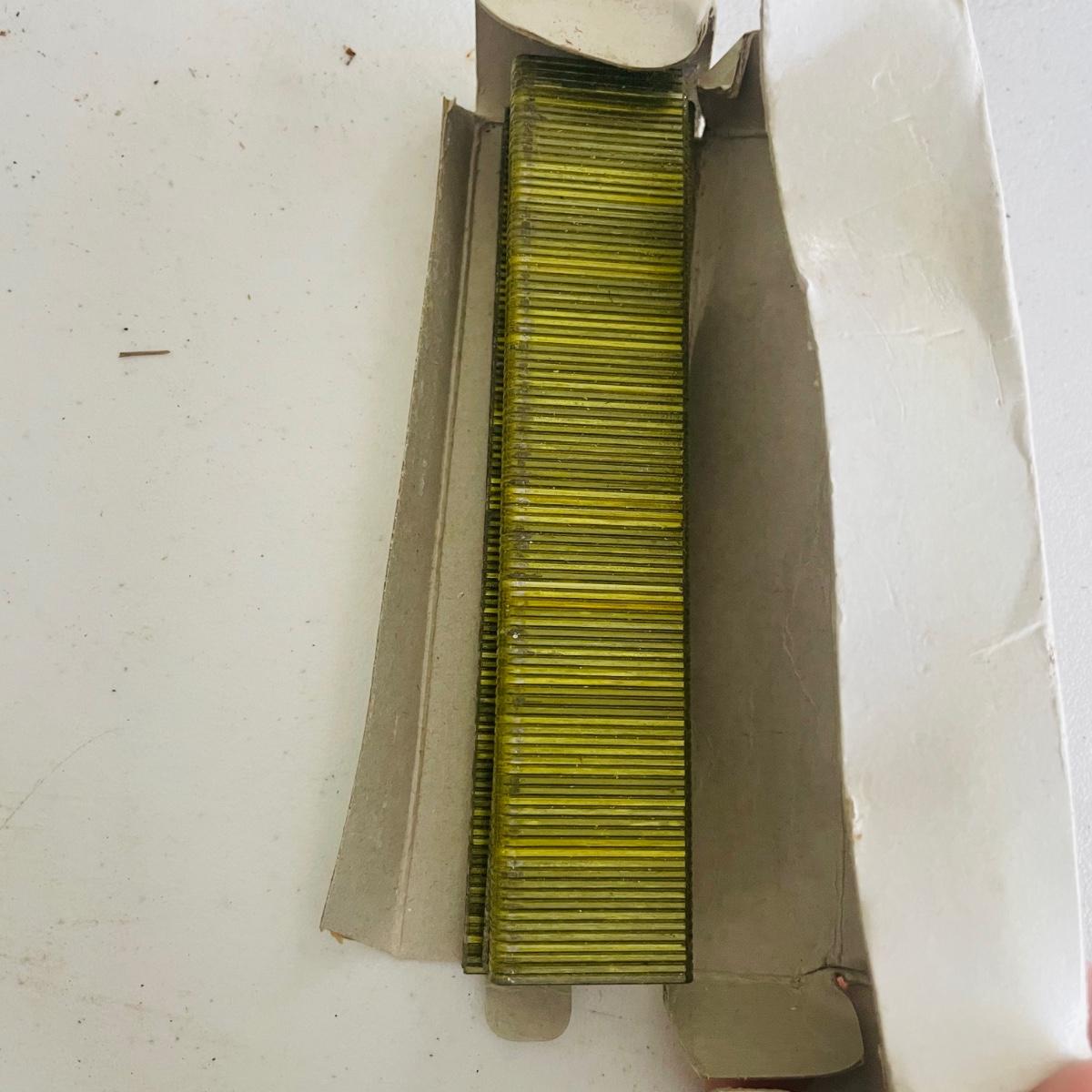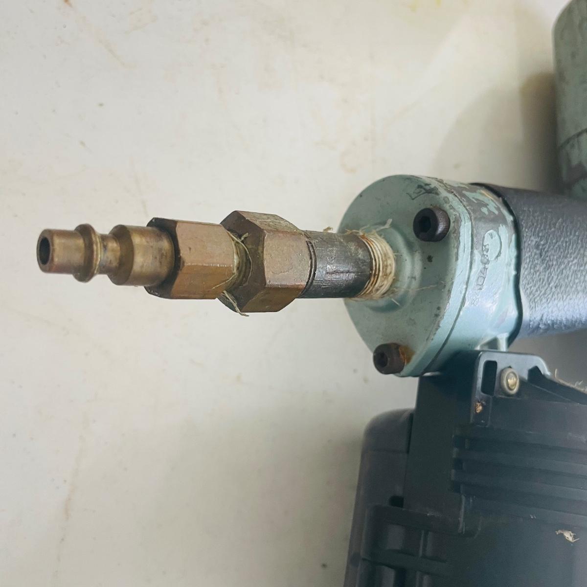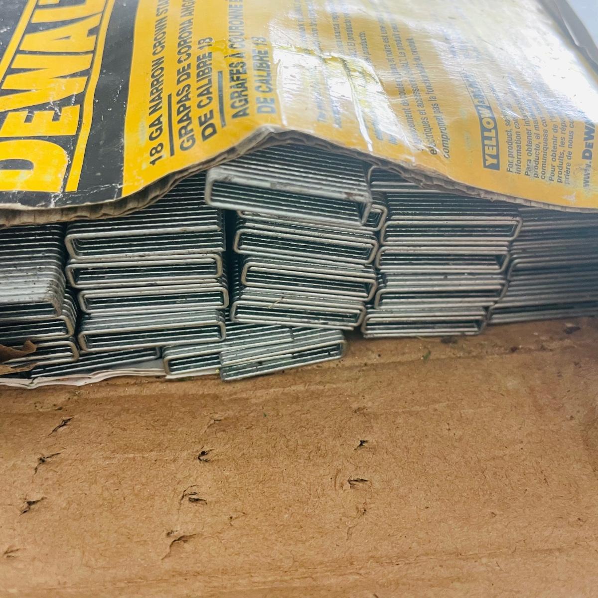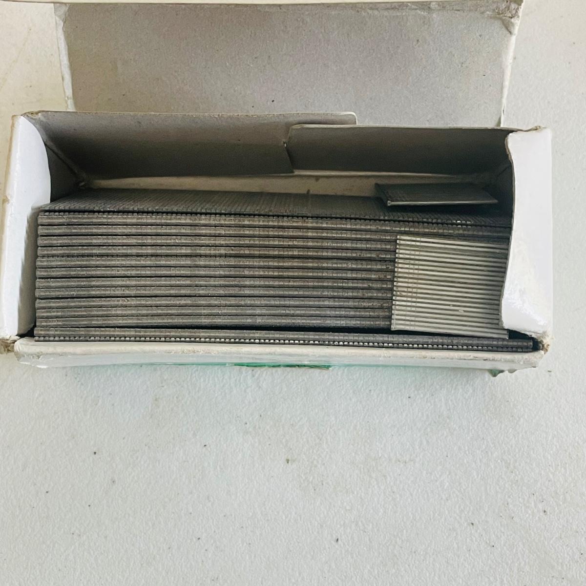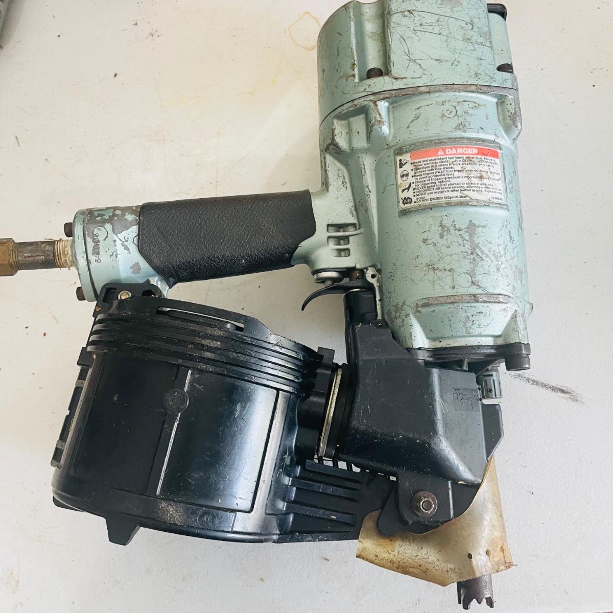 This lot includes 3 different nail guns and a large assortment of nails to accompany the guns. Nail guns include: a Porter Cable 18 ga. nail gun with case. A Hitachi 16 ga. - 2 1/2” nail gun with single or multiple nail option and a Hitachi NV83A2, 3 1/4” coil nailer. All 3 nail guns are used and unable to verify the working condition. The lot also includes a wooden box and Plano tool box full of Nail gun nails including Porter Cable 18ga x 1 1/2” and 2” galvanized Brad nails, 16ga 1 1/4” finishing nails. 18 ga. galvanized crown staples sizes 1/2”, 1” and 1 1/2”. Dewalt 18ga x 1” narrow crown staples and Paslode 16 ga x 2 1/2” finishing nails. The red Plano tool box is used and includes 2 rolls of nails for the Hitachi coil nailer. Two containers of nails gun nails are also included.