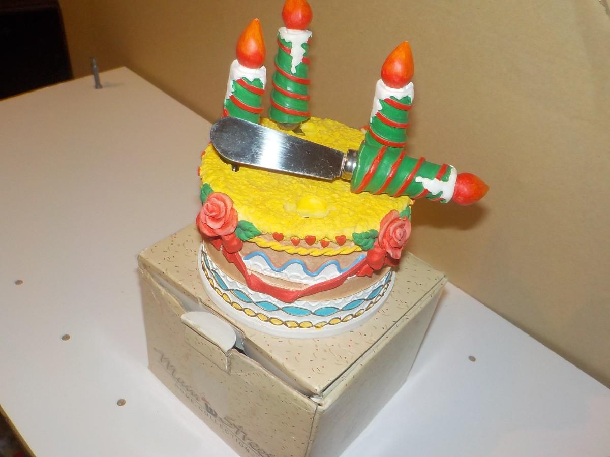 4 Server knifes, and amazing real looking ceramic birthday cake.