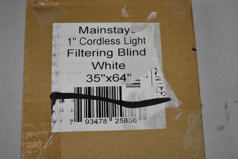 Mainstays 1" Cordless Light Filtering White Blinds, 35" x 64" - New