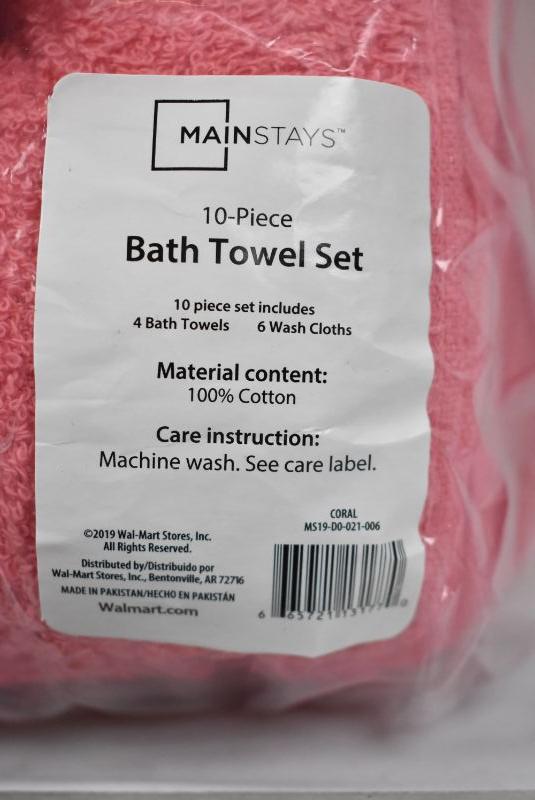 Mainstays 10 pc Bath Towel Set, Coral Pink, $14 Retail - New