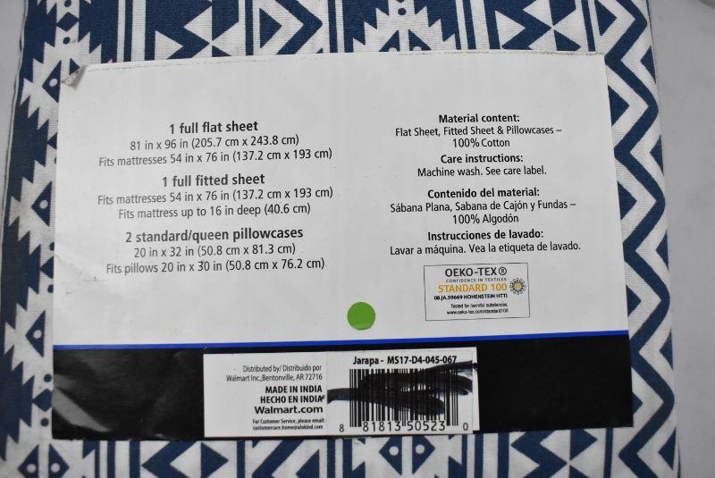 Mainstays 100% Cotton Percale Printed Sheet Set, Jarapa, Full - New