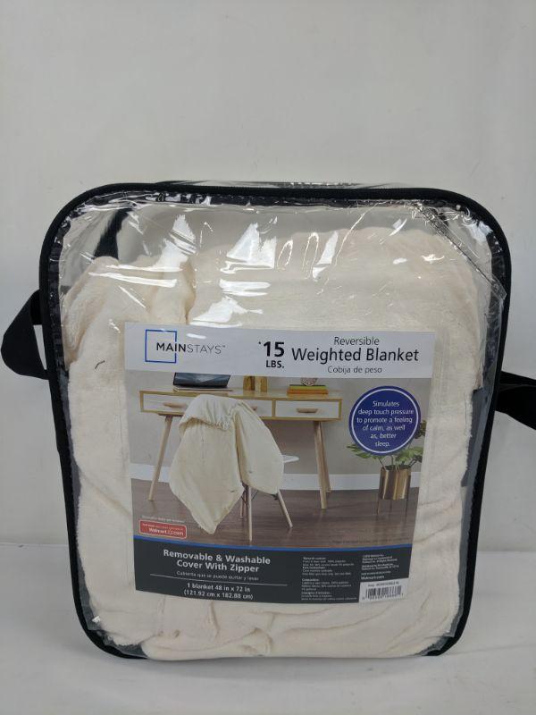Mainstays 15 Lbs. Reversible Weighted Blanket, Cream - Opened Package