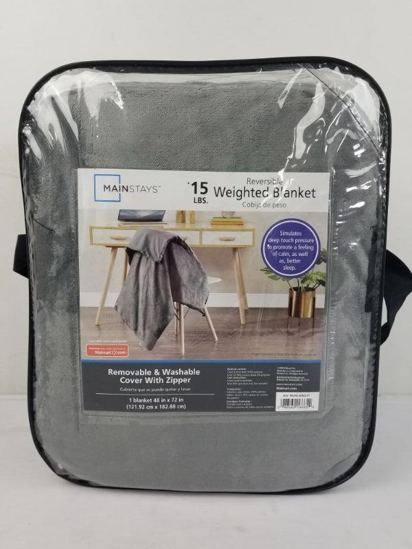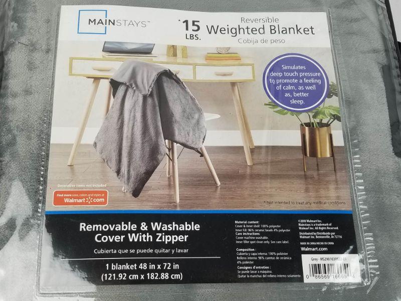 Mainstays 15 Pound Reversible Weighted Blanket, Gray - New