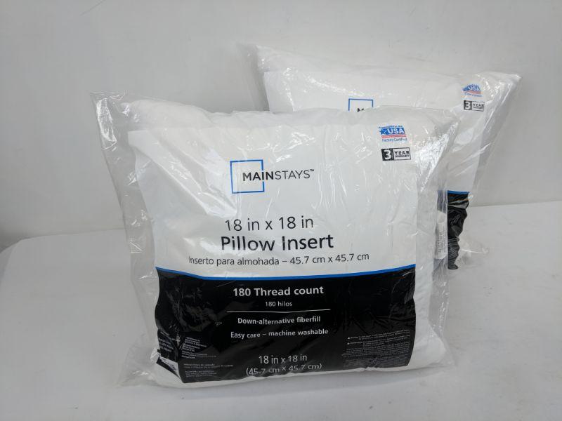 Mainstays 18" x 18" Pillow Insert 180 Thread Count, Set of 2 - New