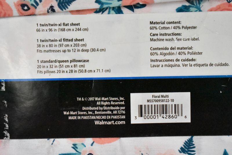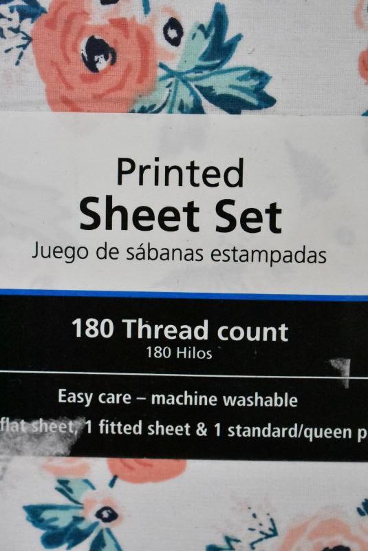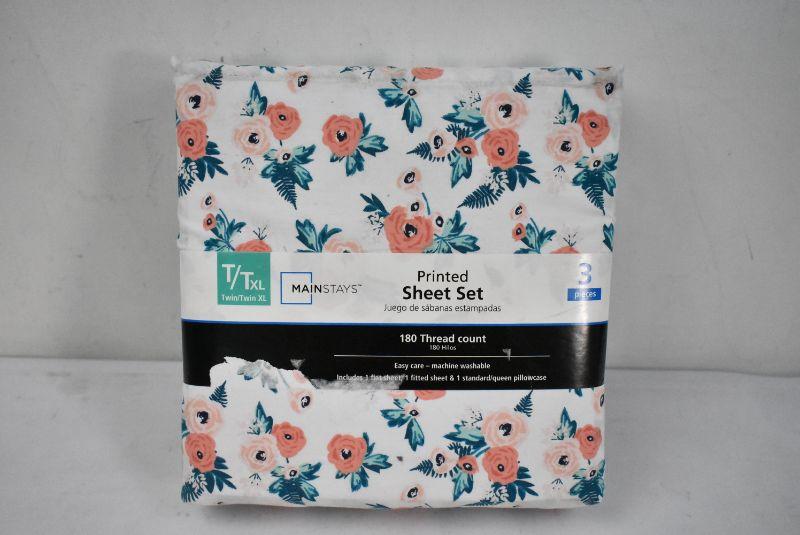 Mainstays 180 Thread Count Novelty Bedding Sheet Set, White, Twin XL, Cotton - New