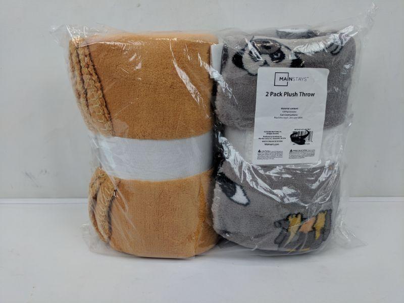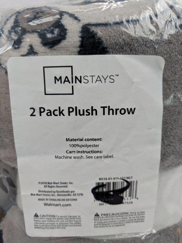 Mainstays 2 Pack Plush Throw Gray/Rust - New