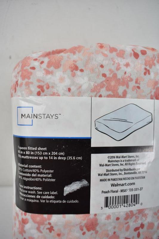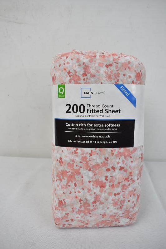 Mainstays 200 Count Fitted Sheet Queen Pink Floral - New