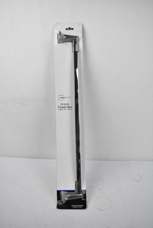 Mainstays 24" Towel Bar, Chrome Finish, Includes Hardware - New