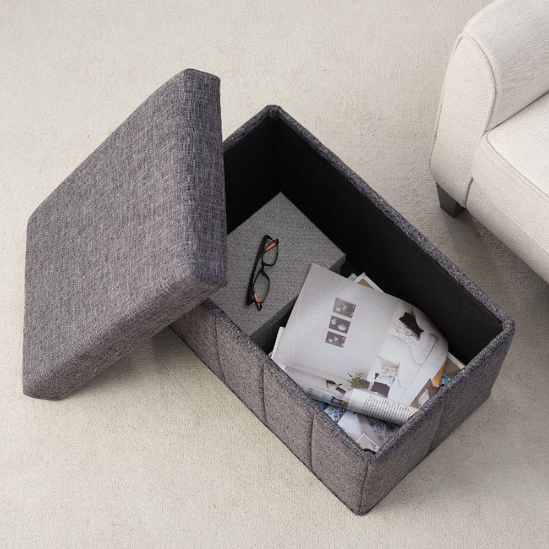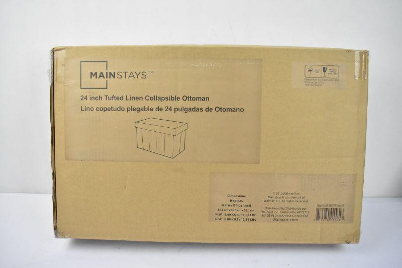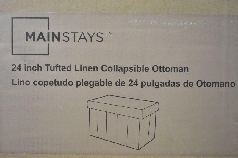 Mainstays 24" Tufted Linen Collapsible Ottoman, Grey Flannel - New