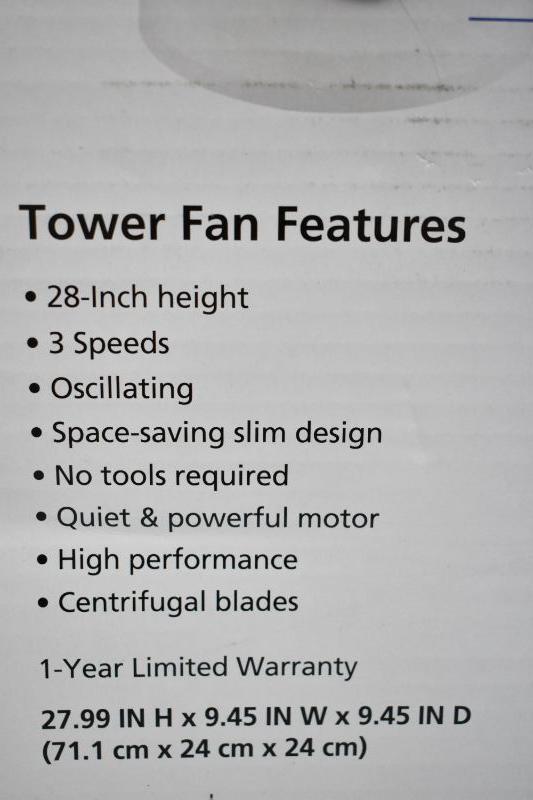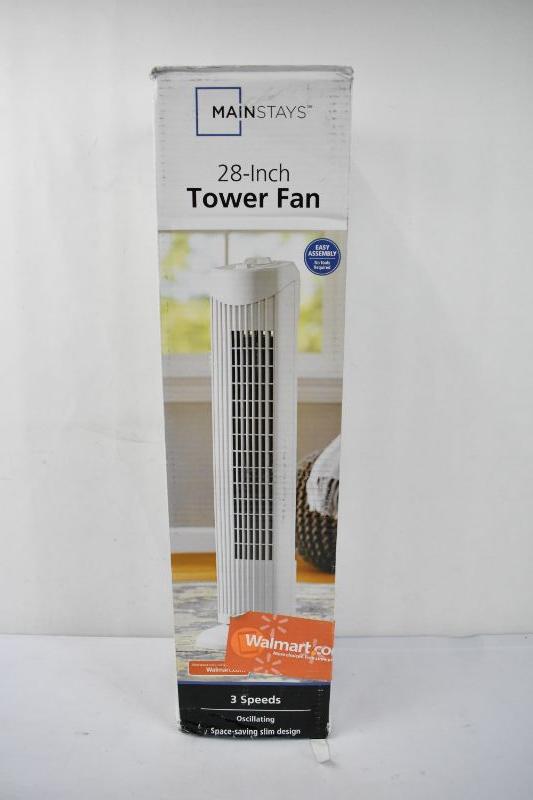 Mainstays 28" Tower Fan, 3 Speeds, Oscillating - New, Damaged Box